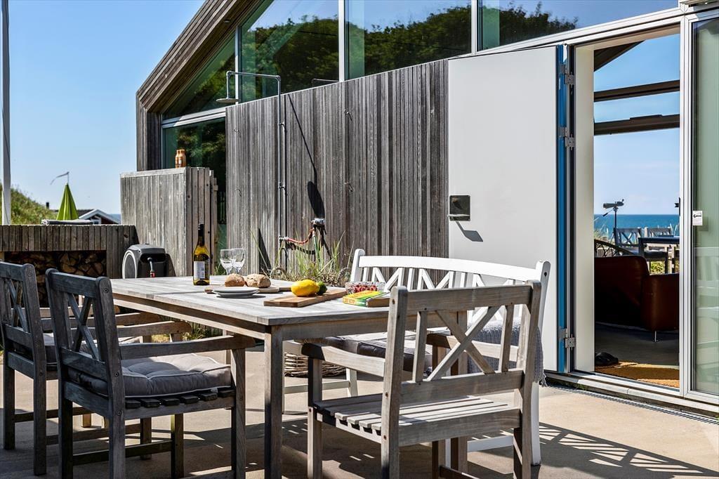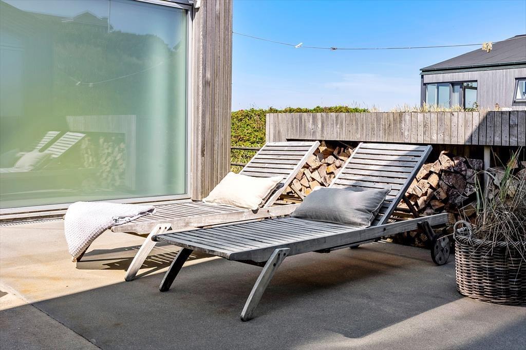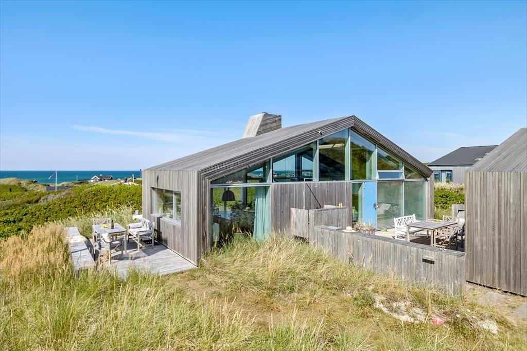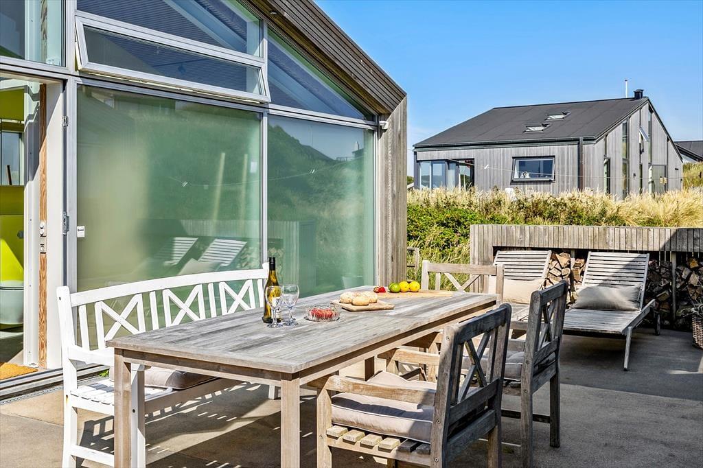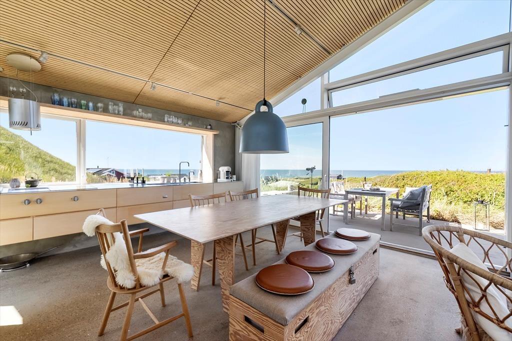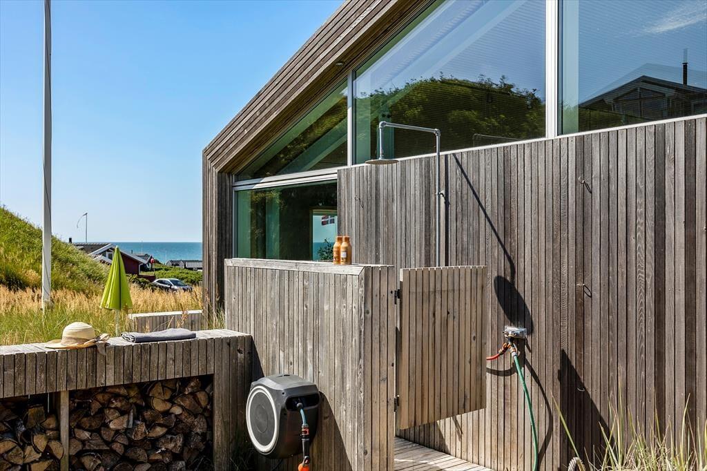 Ein Ferienhaus, das ein wenig aus dem Rahmen fällt: Außen ist es aus Zedernholz gebaut, einem starken Material, das dem rauen nordjütländischen Klima mit Wind, Wasser und Salz standhält. Auch im Inneren gibt es neue und unkonventionelle Möglichkeiten, verschiedene Materialien zu verwenden: Holz, Beton, Stahl und Glas harmonieren gut miteinander und vermitteln einen modernen, aber dennoch warmen und einladenden Eindruck. Das Ferienhaus besteht aus einem großen Küchen- und Wohnbereich, einem Schlafzimmer und einem Badezimmer im Haupthaus und zwei Schlafzimmern im Nebengebäude. Es eignet sich daher sowohl für Paare als auch für Familienurlaube, und vom Haupthaus aus haben Sie eine fantastische Aussicht auf die Nordsee, an klaren Tagen können Sie bis zum Leuchtturm von Hirtshals sehen und die auslaufenden Fähren verfolgen. Was das Fernsehen betrifft, ist es möglich, mit Chromecast zu streamen und was das Radio betrifft, haben Sie Zugang zu Sony usb playrack für iPhone, iPad usw. Eine absolut schöne und gut funktionierende Umgebung für einen unvergesslichen Urlaub in einem der schönsten Urlaubsgebiete Dänemarks.