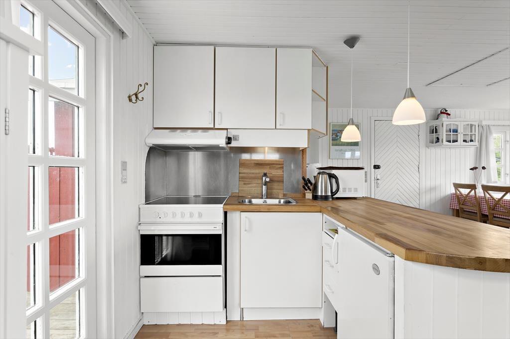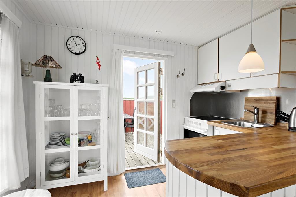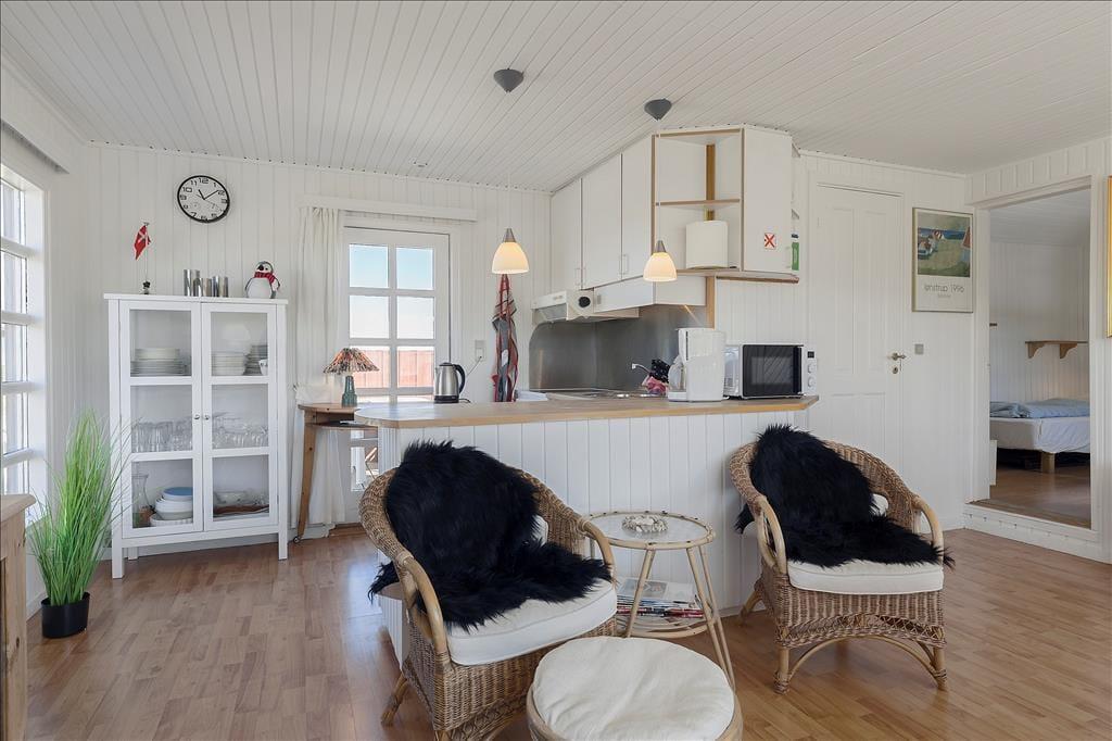 Das Ferienhaus liegt bereits seit dem Jahr 1964 in der attraktiven Küstenlandschaft des gefragten Gebiets Harerenden. Bis heute verzückt es mit seiner klassischen, roten Holzfassade und den reizenden, weißen Sprossenfenstern. Auch im Inneren erwartet Sie viel klassischer Ferienhauscharme. Die schlichte, funktionelle Einrichtung wurde im Laufe der Zeit modernisiert, sodass Sie sich heute auch auf bequeme Annehmlichkeiten, wie beispielsweise eine Wärmepumpe mit Kühlfunktion und einen Flachbild-TV freuen dürfen. Mit einer Wohnfläche von 45 m² zählt dieses Mietobjekt sicherlich nicht zu den größten seiner Art. Wer braucht allerdings noch mehr Platz, wenn das Urlaubsziel im Lesen spannender Bücher, im Genießen köstlicher Mahlzeiten und im Verbringen von unglaublich viel wertvoller, gemeinsamer Zeit liegt? All diese Dinge vollziehen sich im gemütlichen Wohnraum, der auch den Ess- und den offenen Küchenbereich in sich vereint. Im Wohnraum werden Sie darüber hinaus auch mit einem schönen Blick auf das Meer verwöhnt. Ein kleines Badezimmer und zwei Schlafräume, die in Verlängerung zueinander liegen, sind ebenfalls vorhanden.