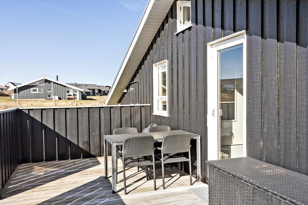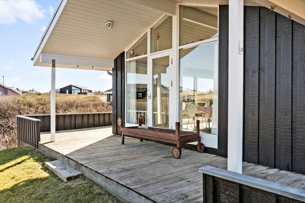 Es gibt schöne Terrassen rund um das Haus, wo Sie die Sonne und die fantastische Aussicht genießen können. Hier finden Sie immer einen Platz mit Sonne oder Schatten, je nach Bedarf, und da das Haus direkt an einer Schlucht liegt, ist es besonders ruhig und privat. Die Kinder können auf dem natürlichen Grundstück spielen oder Ball spielen, das nahtlos in die umliegende Dünenlandschaft übergeht. Hier finden Sie viel Ruhe und Frieden, und die Nordsee ist so nah, dass Sie die frische, salzige Meeresluft von der Terrasse aus genießen können.