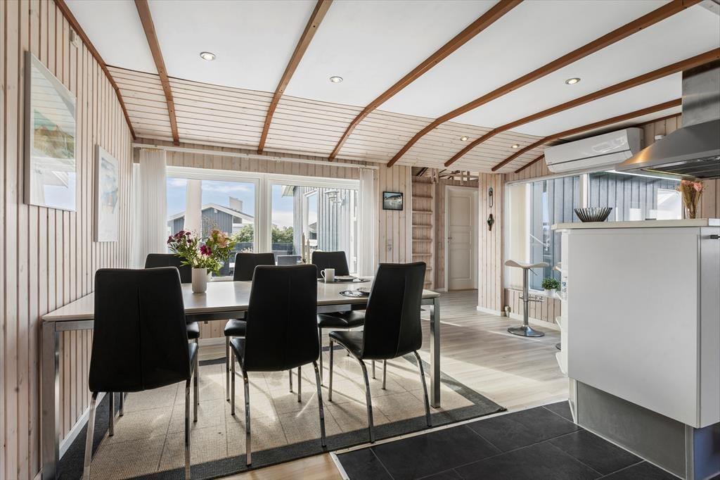 Beim Betreten des Ferienhauses wirst du sofort von einer hellen und gepflegten Atmosphäre empfangen, die vom ersten Moment an für echtes Urlaubsgefühl sorgt. Große Fensterfronten lassen viel Tageslicht herein und bieten dir gleichzeitig einen atemberaubenden Blick auf das Meer und die offene Landschaft rund ums Haus – die perfekte Kulisse für entspannte Urlaubstage mit Familie und Freunden. Der Grundriss des Hauses ist gut durchdacht, mit einer natürlichen Trennung zwischen Ess- und Wohnbereich, sodass sich die ganze Gruppe problemlos zu den Mahlzeiten versammeln kann, ohne auf Ruhe und Erholung verzichten zu müssen. Hier ist Platz für gemeinsames Beisammensein ebenso wie für Rückzugsmomente – ob bei einer Tasse Kaffee und einem guten Buch oder beim Abendessen mit Blick auf den Sonnenuntergang: So fühlt sich Urlaub an.