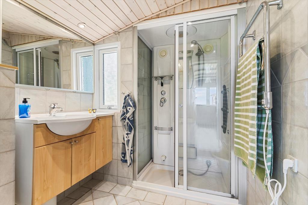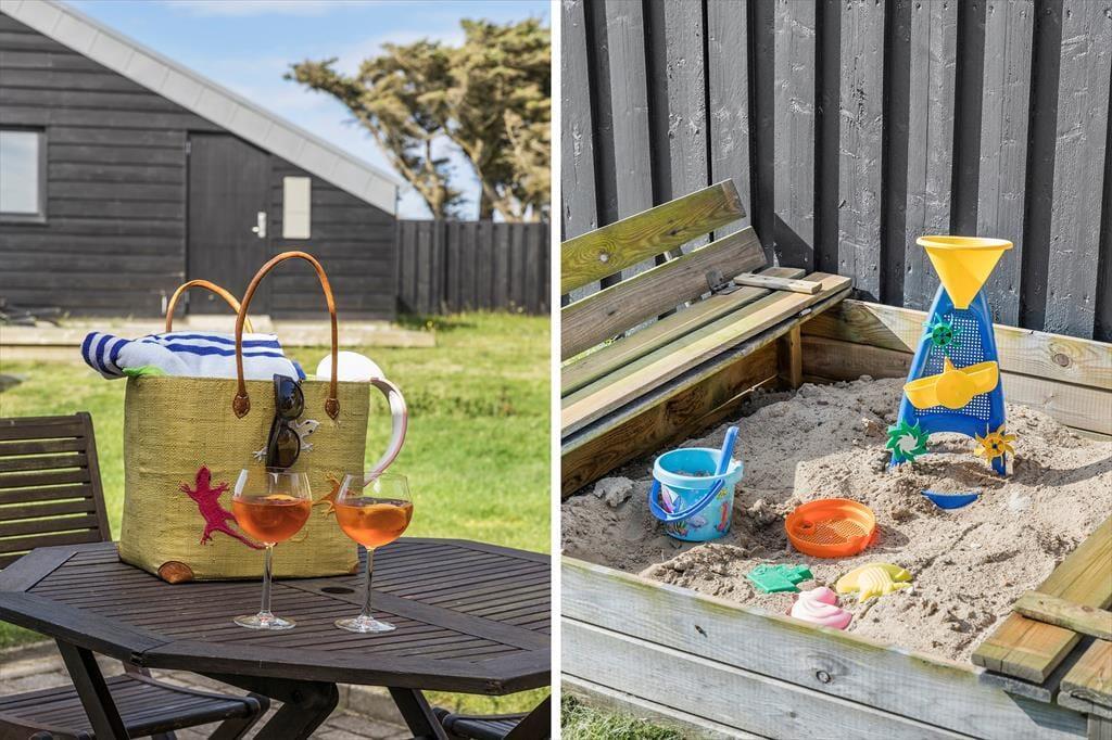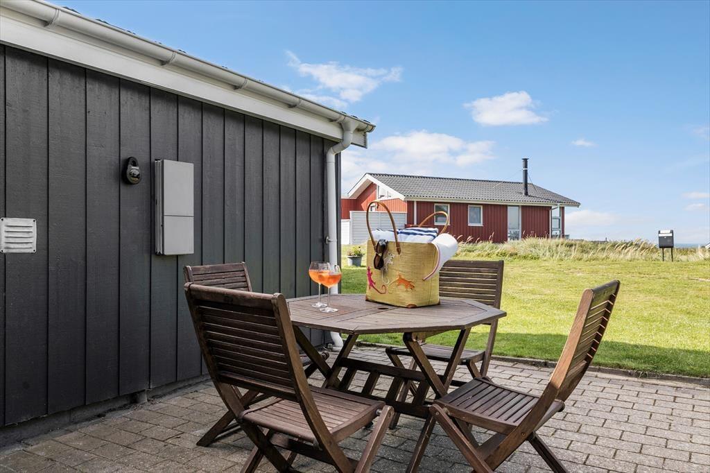 Das Leben im Freien hat hier in der Hybenvej 34 optimale Bedingungen. Das Ferienhaus liegt auf einem schönen Naturgrundstück, auf dem die Terrassen so angelegt sind, dass du den ganzen Tag über Sonne, Windschutz und Ruhe finden kannst. Eine der Terrassen ist eingezäunt – ideal für Hundebesitzer, die ihrem vierbeinigen Freund etwas Freiheit bieten möchten, ohne sich Sorgen machen zu müssen. Die gemütlichen Außenbereiche laden zu allem ein – von ruhigen Morgenstunden mit Vogelgezwitscher im Hintergrund bis zu langen Abenden mit Grillessen und guter Gesellschaft. Und wenn du die Natur noch näher erleben möchtest, führt ein kleiner Pfad direkt vom Haus zum Strand – nur 300 Meter entfernt. Ein weiterer Weg bringt dich durch ein schönes, grünes Gebiet entlang eines kleinen Bachs – ein idealer Ort für einen gemütlichen Spaziergang oder ein kleines Abenteuer für Kinder und neugierige Hunde.