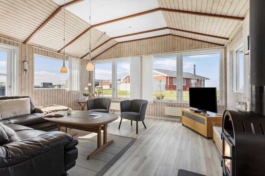 Das Ferienhaus liegt in einem der begehrtesten Gebiete Lønstrups – naturnah und dennoch nicht weit vom pulsierenden Zentrum des Ferienorts entfernt. Der Strand ist, wie bereits erwähnt, ganz in der Nähe, und auch das charmante Stadtzentrum mit Galerien, kleinen Geschäften und guten Restaurants ist schnell erreichbar. Hier findest du alles – von hausgemachtem Eis bis zu Gourmetgerichten. Wenn du Lust hast, in lokale Kultur und Handwerkskunst einzutauchen, bist du in Lønstrup genau richtig. Auch ein Ausflug zur Steilküste Lønstrup Klint lohnt sich – der Ausblick über die Nordsee ist gleichermaßen dramatisch und faszinierend. Und wenn du dir noch mehr Verwöhnung wünschst, ist das Skallerup Seaside Resort nur eine kurze Autofahrt entfernt – mit Spa, Wellness und Aktivitäten für die ganze Familie. Kurz gesagt: Hier bekommst du ein Ferienhaus, das sowohl Ruhe als auch Erlebnisse direkt vor der Tür bietet – egal ob du von Wellen, Wanderwegen oder westjütländischem Charme träumst.