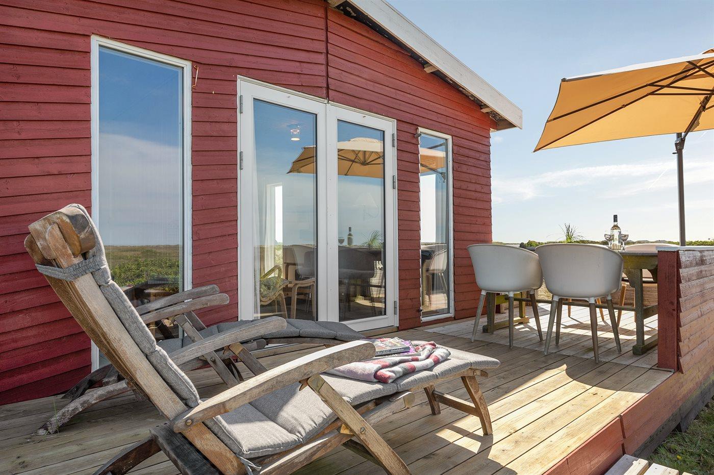 Dieses schöne Ferienhaus aus Holz, 1950 gebaut und über die Jahre renoviert, liegt auf einem hügeligen Naturgrundstück mit einer phantastischen, ungestörten Aussicht über die Nordsee. Zum Haus gehören sowohl offene als überdachte Terrasse mit Gartenmöbeln.