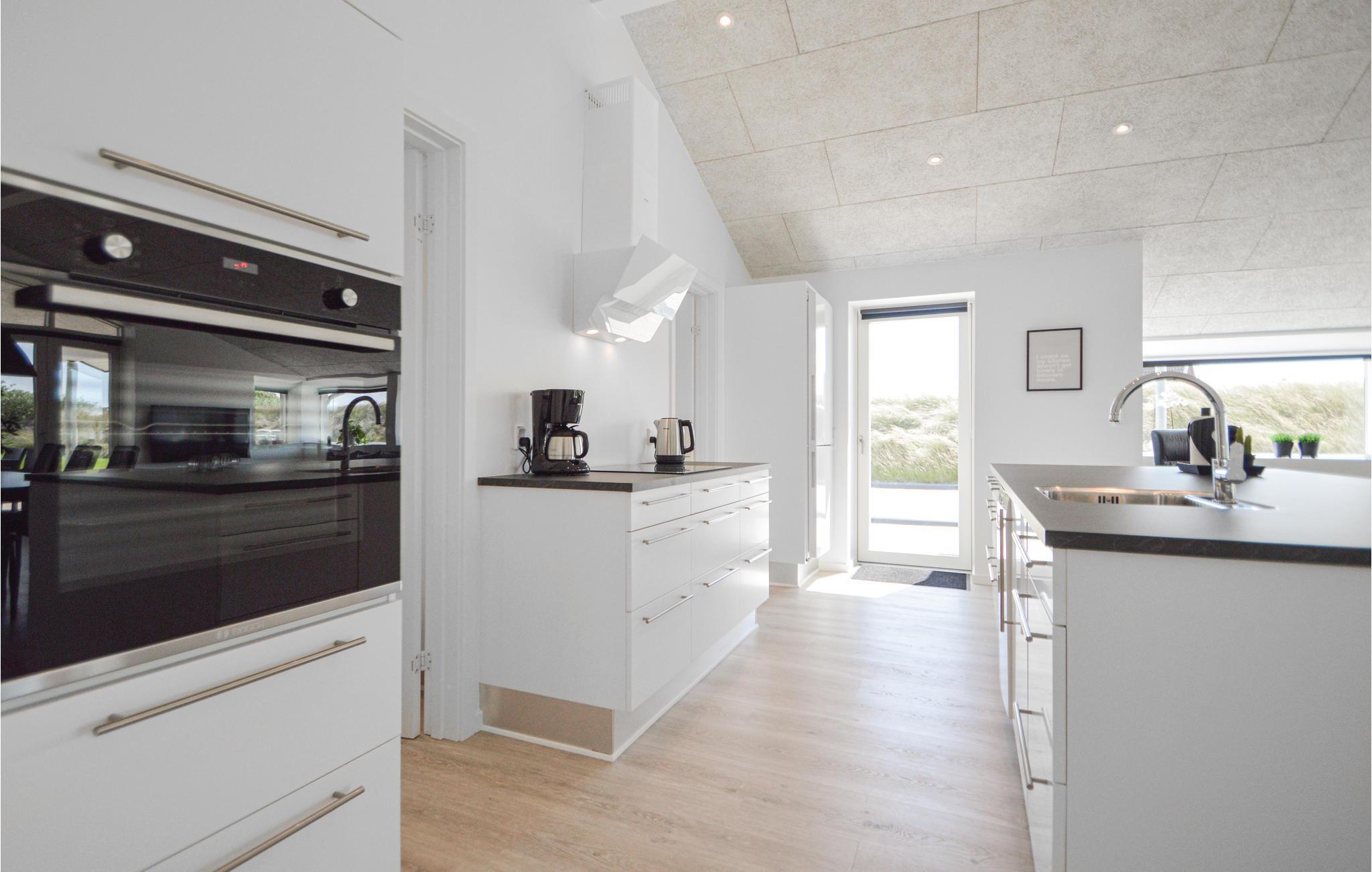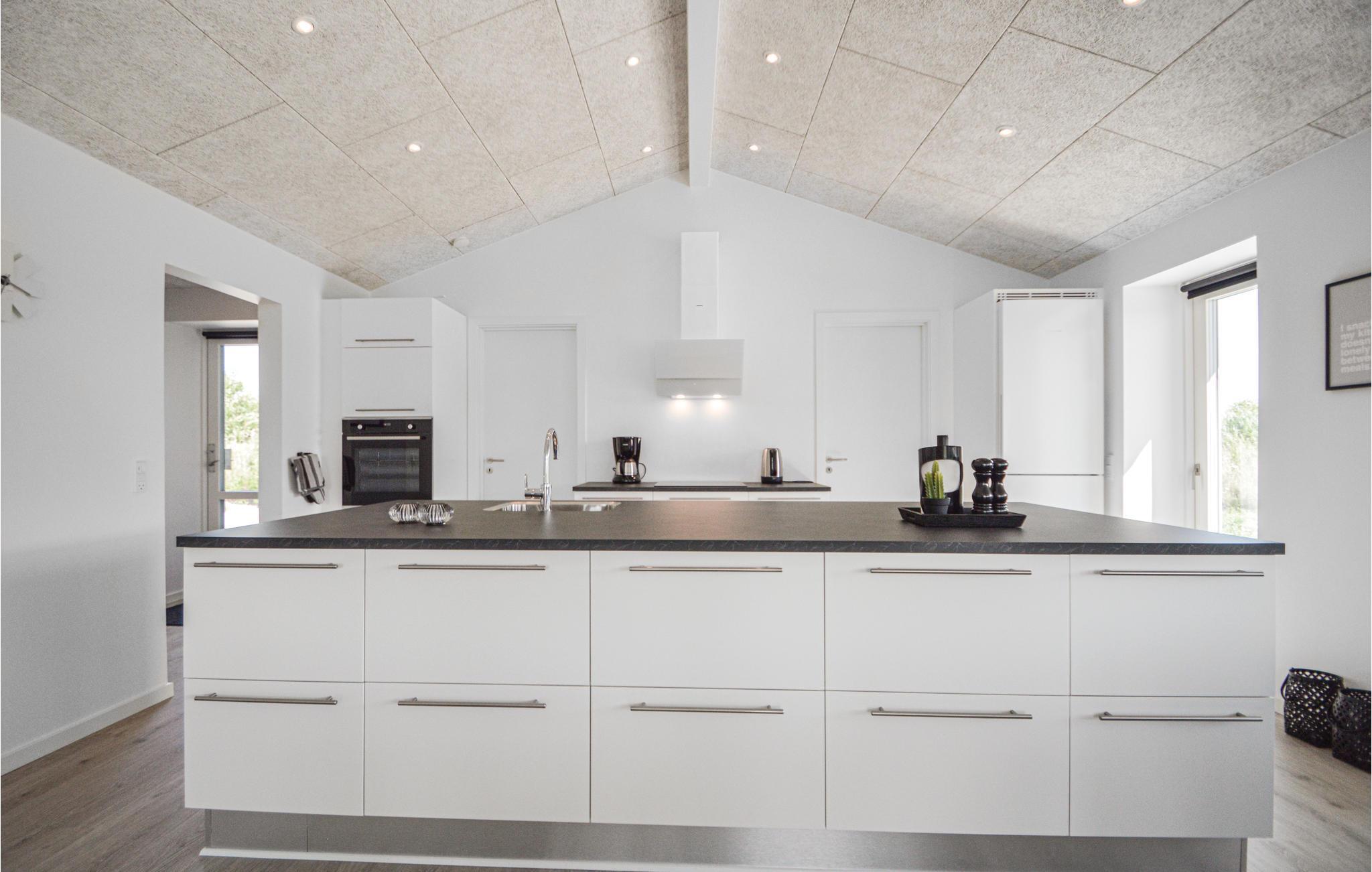 Gutes, geräumiges Ferienhaus in guter Lage im beliebten Lakolk. Die große Wohnküche ist sehr gut eingerichtet und verfügt über hübsche Möbel, eine prächtige Küche und einen angenehmen Essplatz. Der Kaminofen ist ein toller Hingucker für gemütliche Abende in geruhsamer Atmosphäre. Die umweltfreundliche Wärmepumpe hilft, Energie zu sparen.