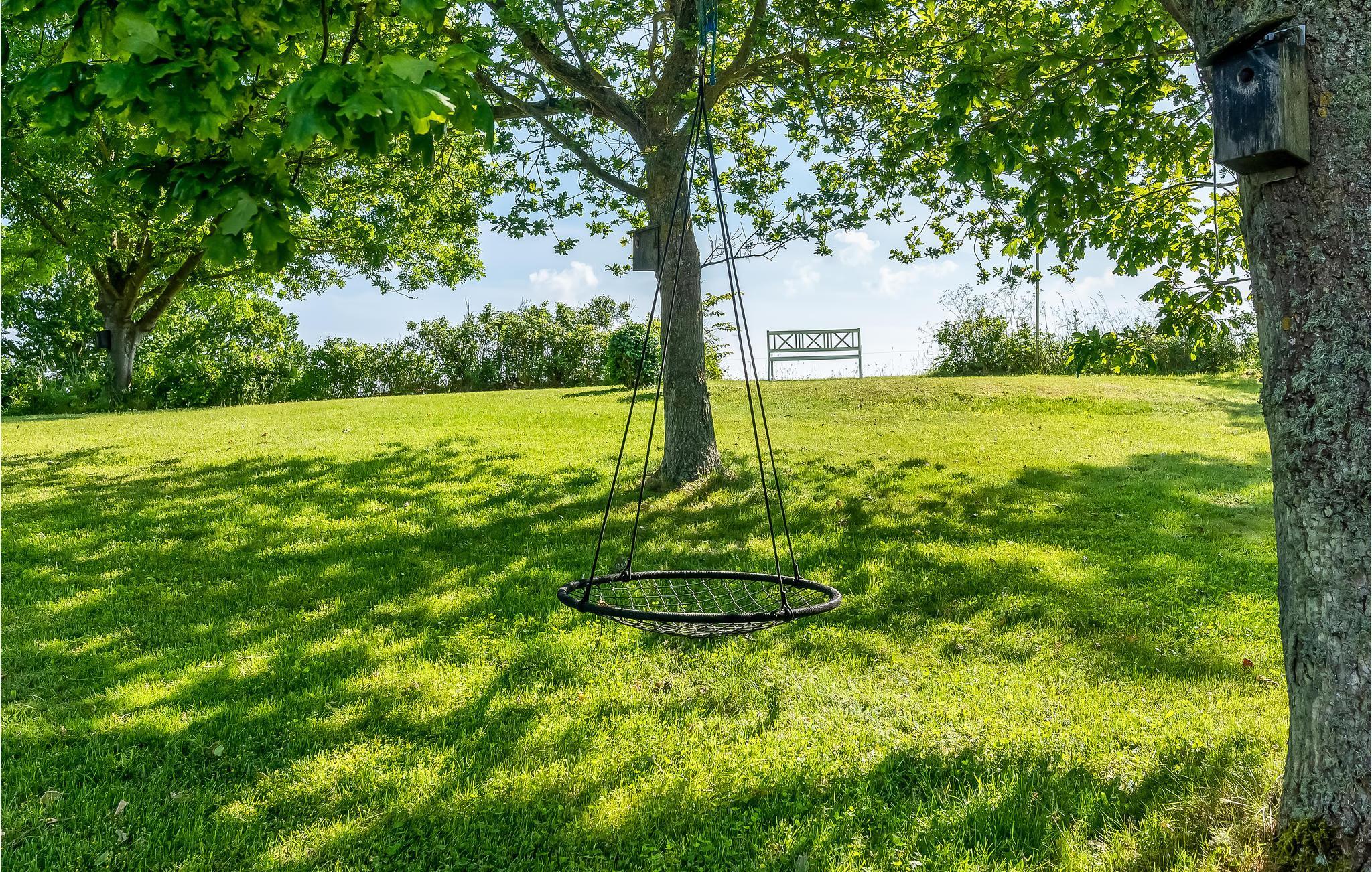 Von hier aus betreten Sie eine schöne Holzterrasse, auf der Sie die Mahlzeiten des Urlaubs mit guter Aussicht und frischer Luft genießen können. Der Garten bietet auch eine schöne Rasenfläche, eine Schaukel im Baum und einen Aussichtspunkt, wo Sie den Morgenkaffee oder ein kaltes Glas Weißwein am Abend trinken können.