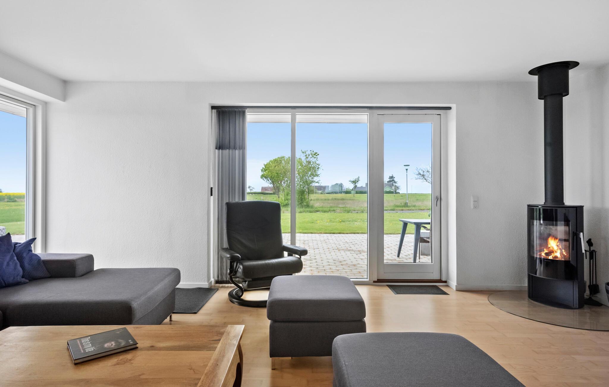 Komfortables Ferienhaus auf Langø mit Kamin, Wintergarten und großem Garten für erholsame Urlaubstage.