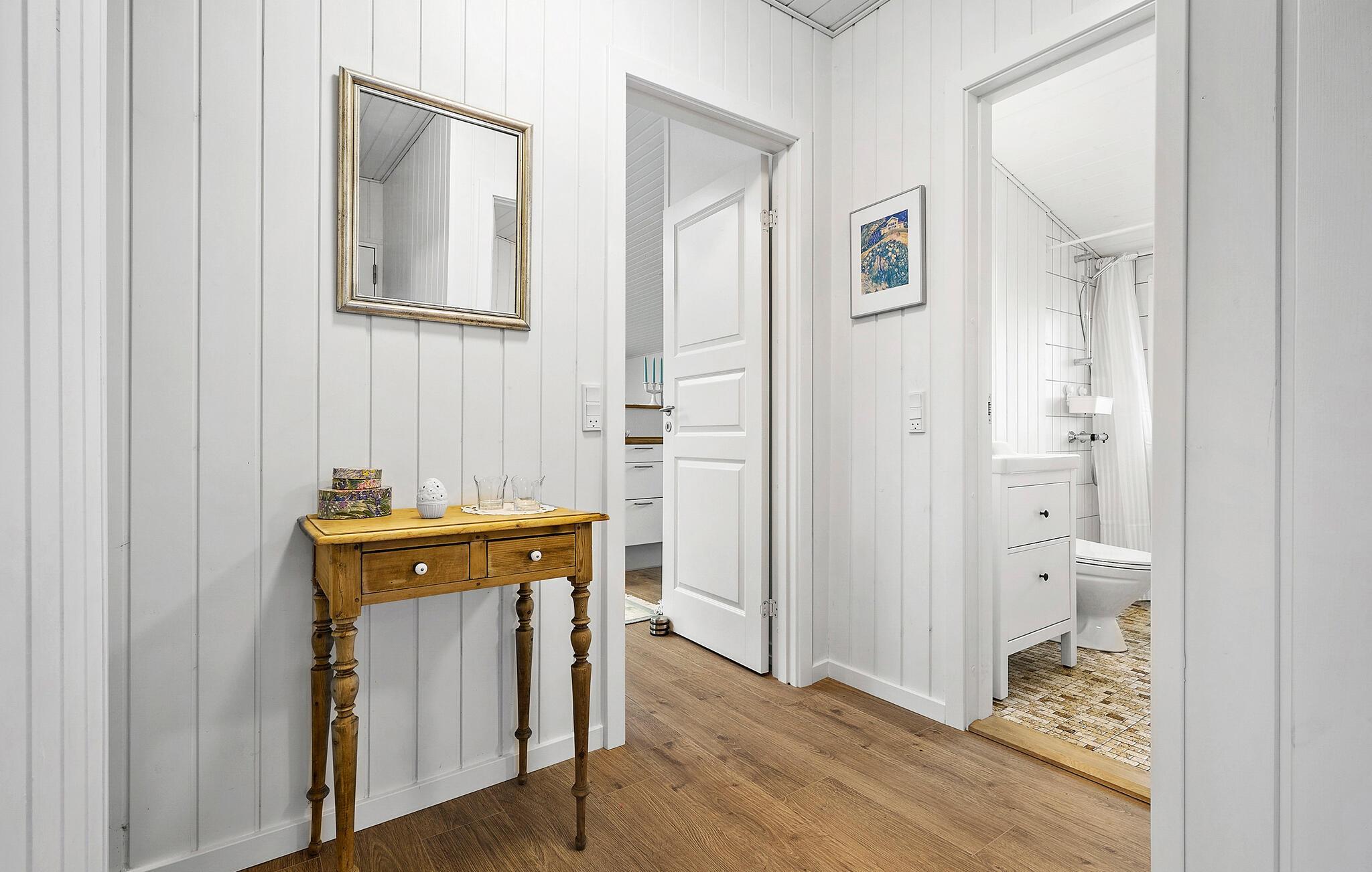 Nutzen Sie den einladenden Außenbereich für entspannte Stunden im Freien. Nehmen Sie bei schönem Wetter Ihr Frühstück auf einer der überdachten Terrassenbereiche ein. Machen Sie es sich auf den Sonnenliegen im Garten bequem und bereiten Sie ein Abendessen auf dem Grill zu. Der Blick auf die umliegende Landschaft und den nahen Fjord sorgt für eine idyllische Kulisse.