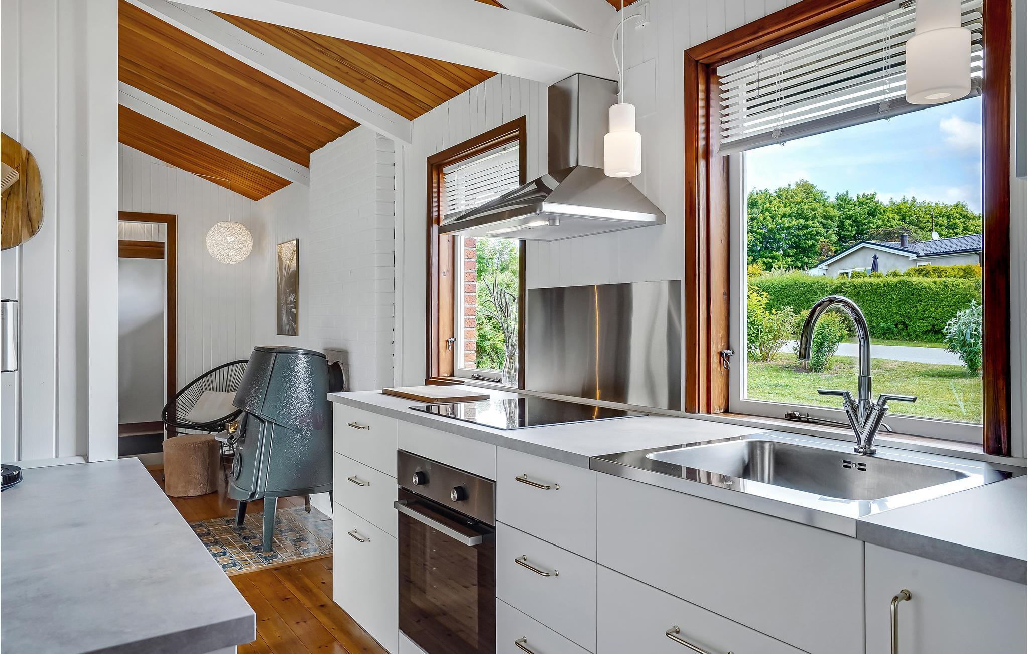 In naturschöner Umgebung erwartet Sie ein Urlaub der besonderen Klasse in diesem Ferienhaus. Der Innenraum ist sehr stilvoll und hübsch eingerichtet mit vielen, schönen Einzelheiten aus Holz. Das Haus bietet ein geräumiges Wohnzimmer mit offener Küche, wo Sie in entspannter Atmosphäre viele, gesellige Stunden verbringen können. Ein Highlight ist der stimmungsvolle Wintergarten, wo Sie bei jedem Wetter gemütlich sitzen und die Aussicht auf den Fjord genießen können.