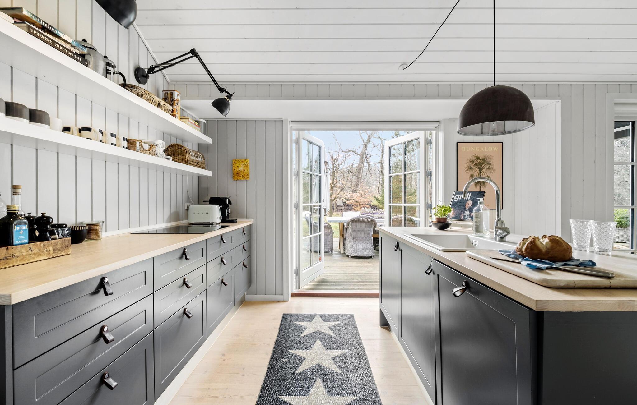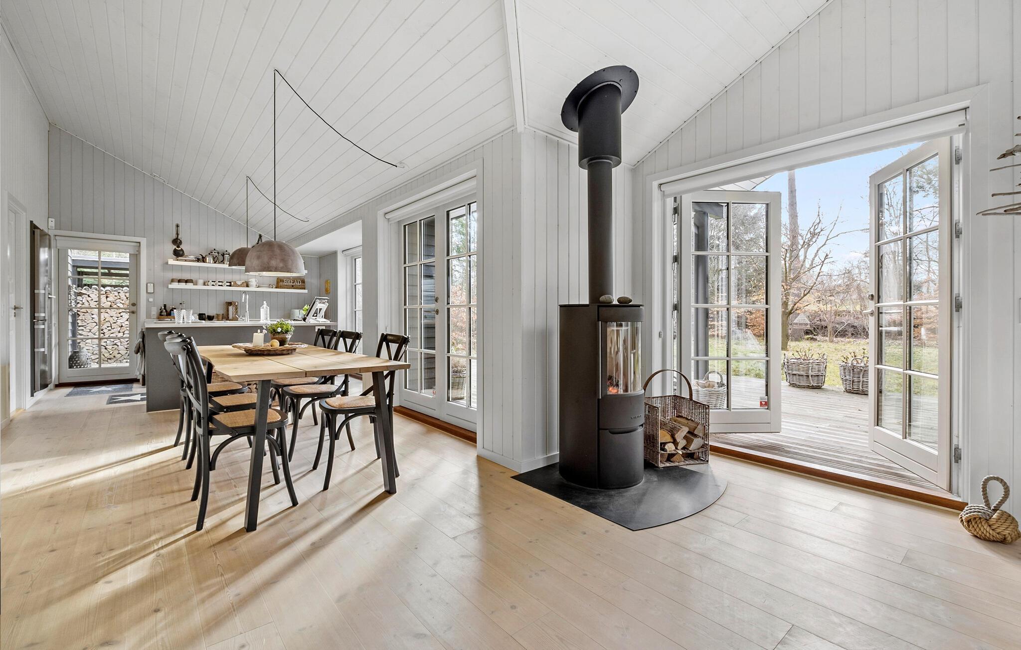 Durch die Flügeltür können Sie auf die geräumige Holzterrasse treten, die Sonne genießen und an der Sommerküche leckere Grillgerichte zubereiten. Während Ihre Kinder im Garten spielen, können Sie den Eichhörnchen in den Bäumen zusehen und herrlich entspannen.