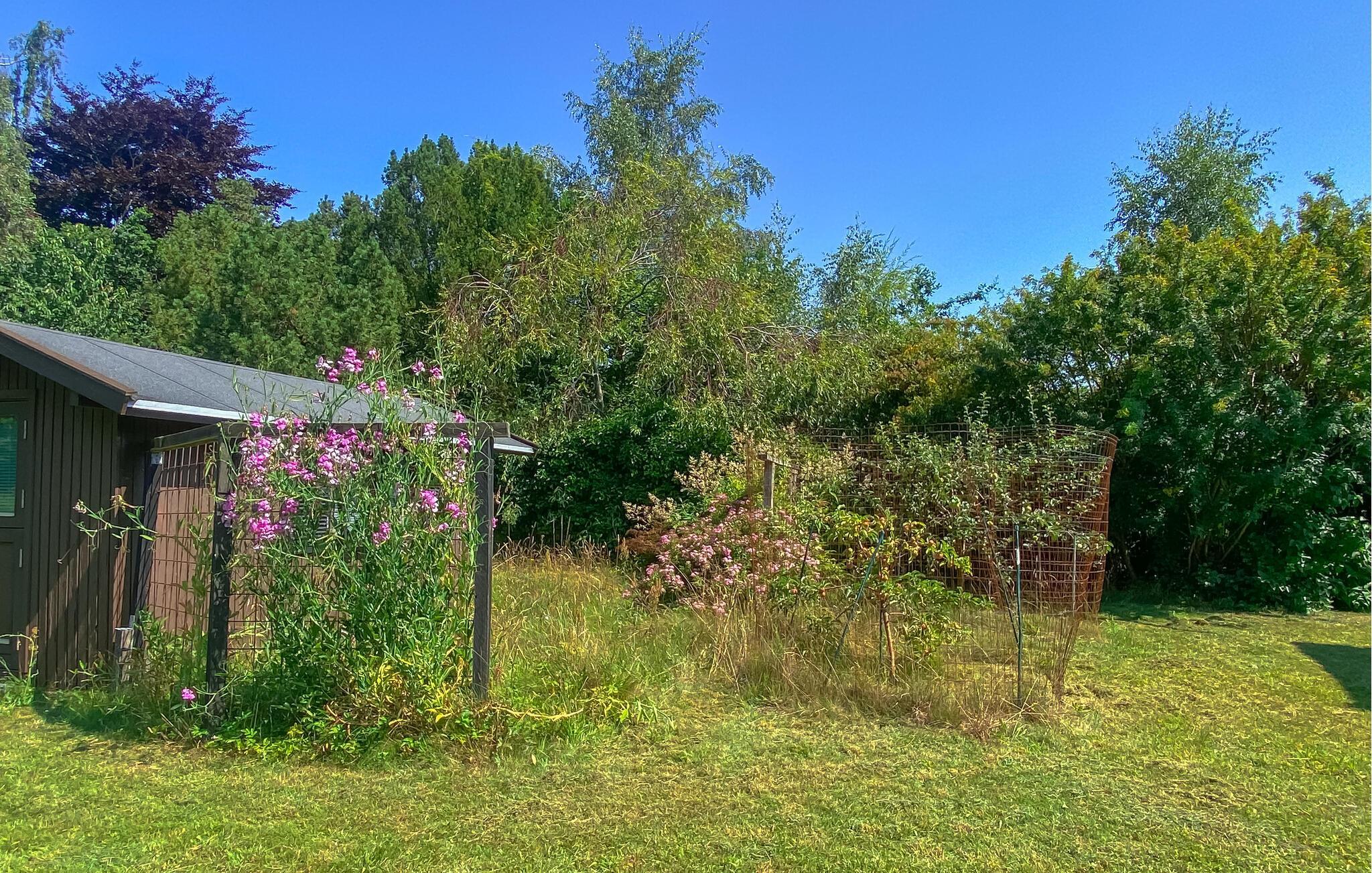 Charmantes Ferienhaus mit großem Garten nahe Liseleje Strand bietet Erholung und Spielmöglichkeiten in der Natur.