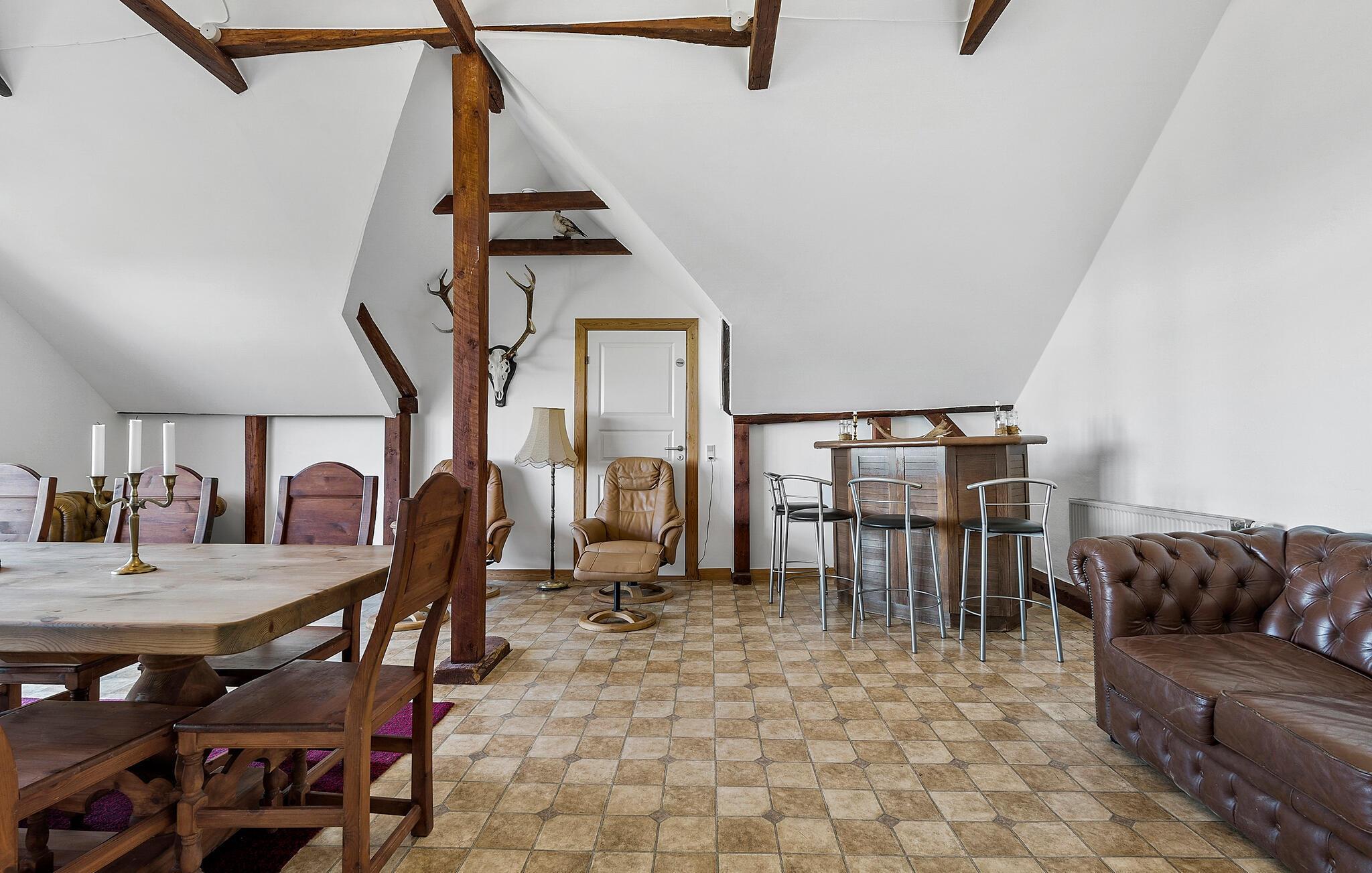 Freuen Sie sich auf diese geräumige Ferienwohnung, gelegen zwischen den Seen Flade Sø und Ørum Sø sowie nahe der dänischen Westküste, etwas nördlich von Agger. Sie verspricht Ruhe und Erholung inmitten einer idyllischen Naturkulisse. Starten Sie Ihren Tag mit einem gemütlichen Frühstück im charmanten Innenbereich, der durch seinen rustikalen Charme und einem gemütlichen Holzambiente zu überzeugen weiß. Zahlreiche bequeme Sitzgelegenheiten laden zum Verweilen und zu entspannten Stunden mit lustigen Brettspielen, einem guten Buch oder einem Film ein. Für eine wohlige Atmosphäre sorgt auch der Kaminofen.