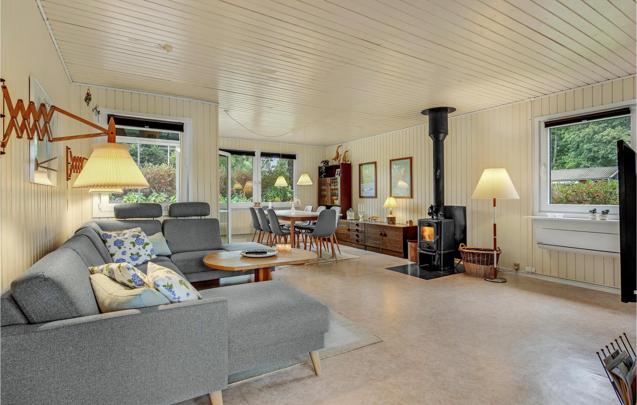 Wenn Sie dieses schöne Ferienhaus betreten, wird Ihnen die Helligkeit und Offenheit des Hauses auffallen. Große Fensterfronten erhellen den Wohn- und Essbereich. Hier können Sie sich wohlfühlen und immer einen Blick in den Garten werfen. Eine schöne, große Holzterrasse, die direkt an das Haus anschließt lädt Sie zum Essen und Sonnenbaden ein. Eine weitere, höhergelegte Terrasse erstreckt sich im Garten und verspricht Ihnen auf dem Sonnenbett Gemütlichkeit und hohen Komfort.