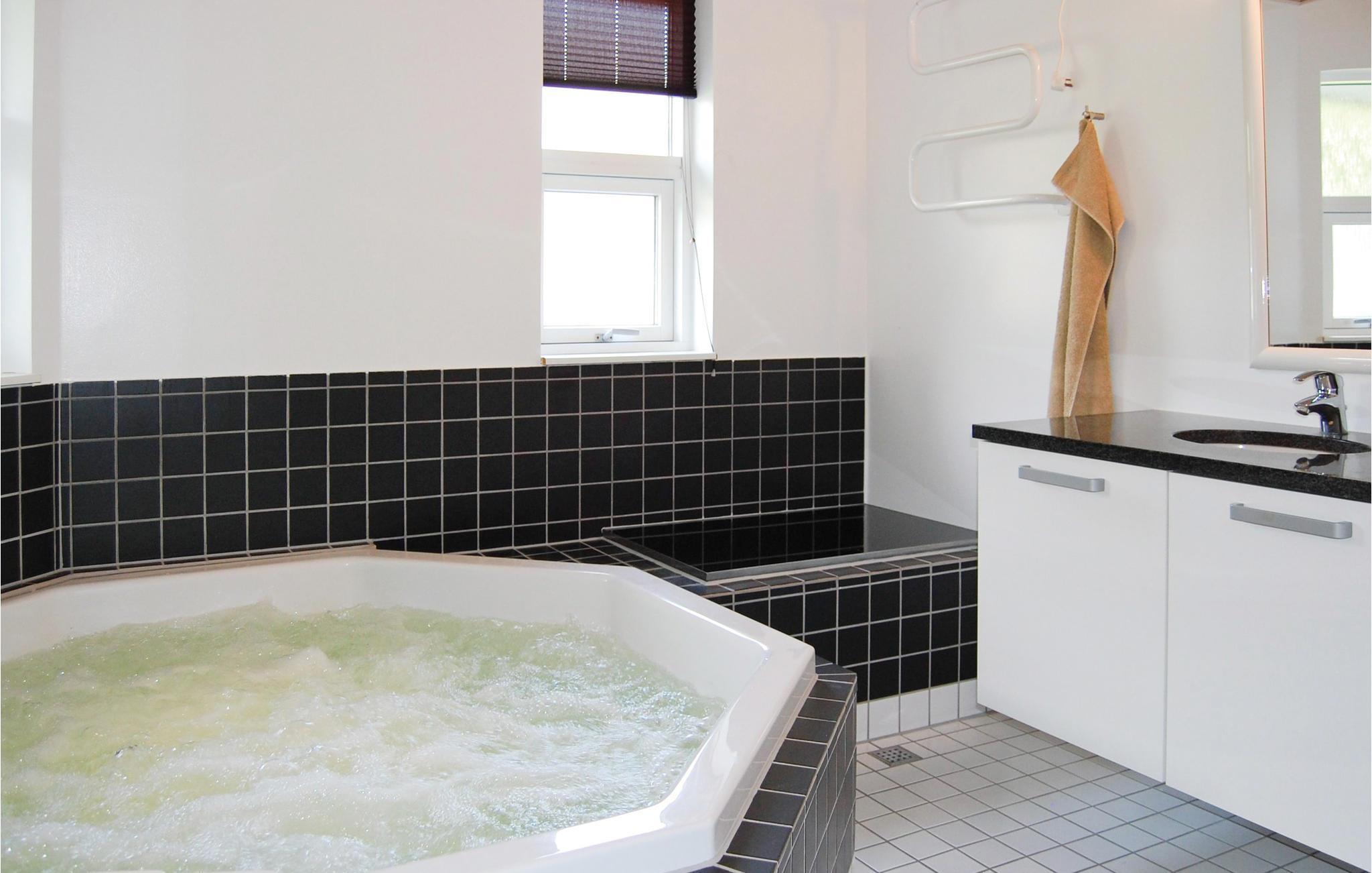 Schönes, gepflegtes Haus mit hellen Räumen und Decken offen bis unter den First. Das Wohnzimmer ist zur Küche hin offen. Hier sorgen die Oberlichtfenster am First für helle, lichtdurchflutete Räume. Die moderne Einrichtung mit viel Qualität umfasst auch den großen Whirlpool für 6 Personen, der bereits bei Ihrer Ankunft für die Nutzung bereit steht und Sie mit einer Massage empfängt. Abends sorgen viele Spiele und der Hems, der für Ihre Kinder mit einem großen Sitzsack, TV und die PlayStation3 mit Spiele für viel Gemütlichkeit. Vom Wohnzimmer kommen Sie auf die Terrasse nach Süden und die überdachte Ostterrasse, auf denen Sie gute Gartenmöbel und Liegen finden. Das Trampolin im Garten dürfen Sie (1.4. -1.11.) auf eigene Gefahr benützen, des Weiteren sind Sandkiste und Spielzeug vorhanden. Im Winter können Sie sogar das Meer zwischen den Bäumen sehen, es liegt nur einen kurzen Abstand vom Haus und die vielen Wege laden zum Spazieren ein. Der nahe Strand ist kinderfreundlich und gut zum Baden und Angeln geeignet. Ein anspruchsvoller Golfplatz liegt 5 km vom Haus entfernt. Hier haben Sie auch eine große Auswahl an Ausflugszielen. Haderslev, Aabenraa und Sønderborg sind alles interessante, gepflegte Städte. U. a. gibt es die folgenden Attraktionen: Legoland, Schloss Gråsten , Givskud Zoo und das Danfoss Universe. Zu Fuß erreichen Sie auch das Schiff, mit dem Sie einen Ausflug auf Barsø machen können.