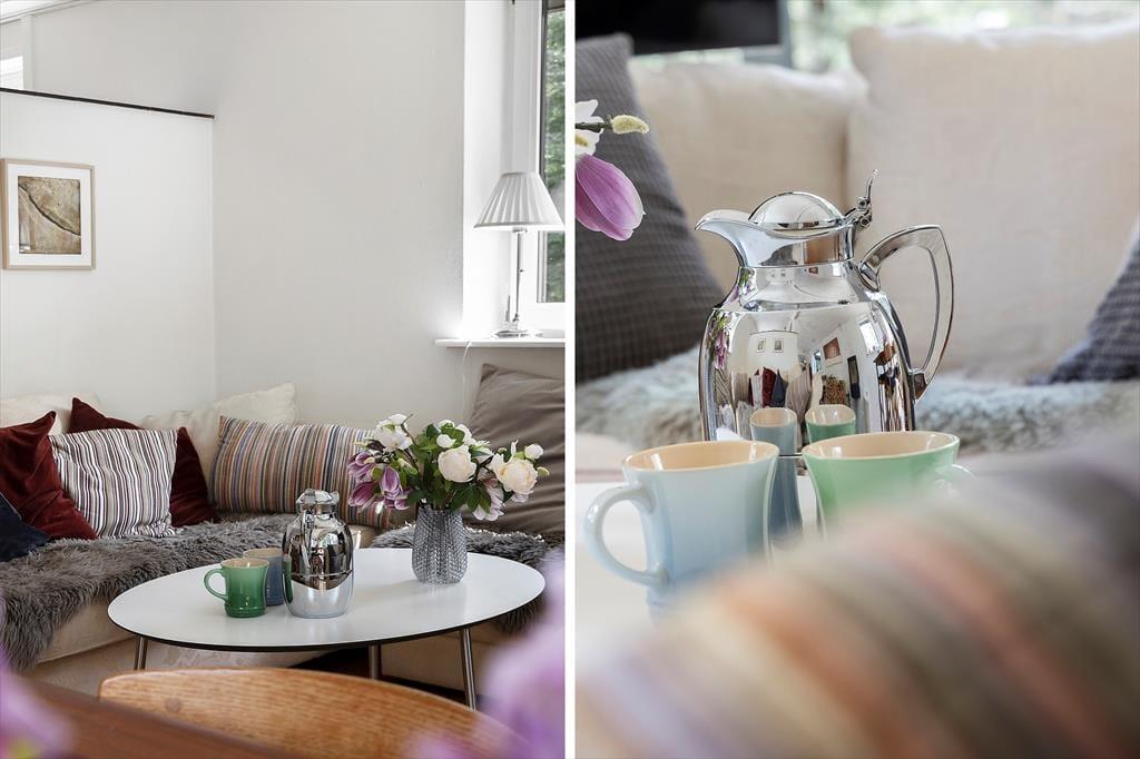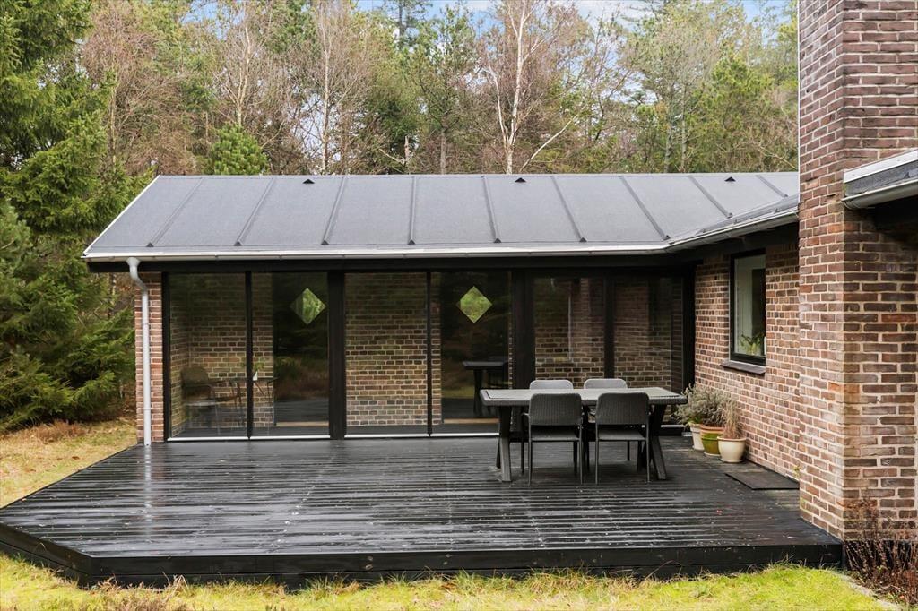 Die Terrasse des Ferienhauses lädt dazu ein, den ganzen Tag im Freien zu verbringen. Genießen Sie Ihren Morgenkaffee in der Sonne, versammeln Sie die Familie zum Mittagessen unter freiem Himmel oder grillen Sie das Abendessen an den langen Sommerabenden. Der Außenbereich ist von schöner Natur umgeben und bietet Platz für Entspannung und Spiel – ob die Kinder herumtoben oder die Erwachsenen die friedliche Atmosphäre genießen.