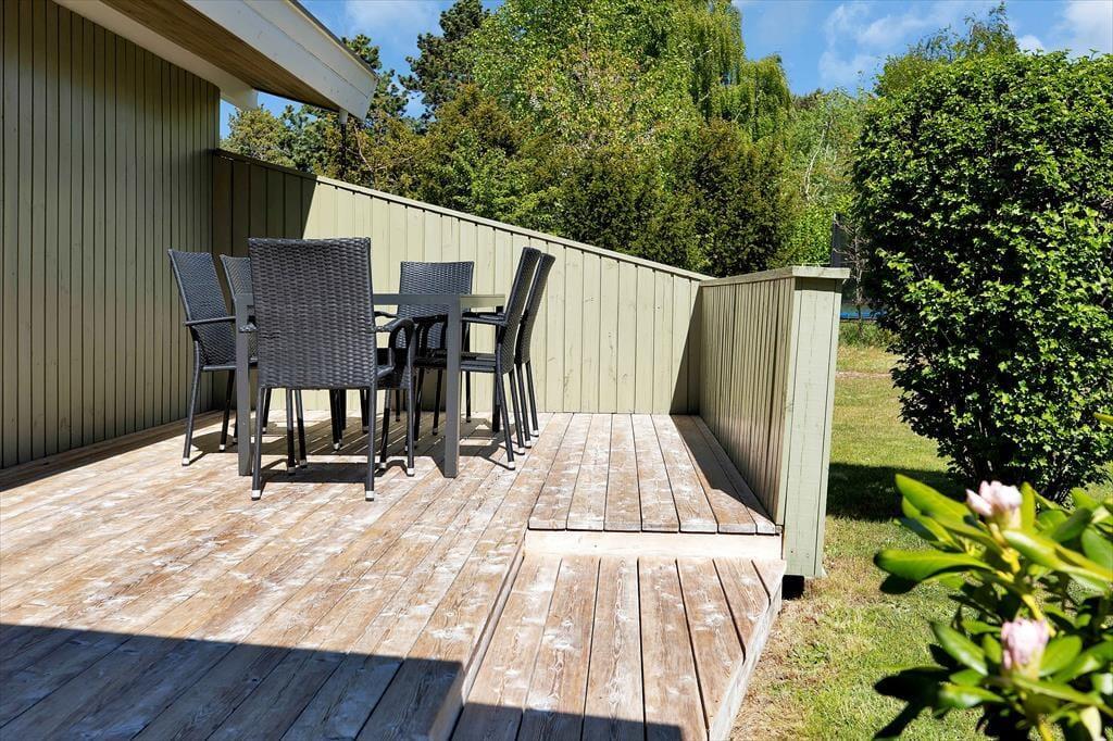 Auf der großen Terrasse wirst du von morgens bis abends mit Sonne verwöhnt. Allabendlich werdet ihr auf der Terrasse bei einem guten Abendessen beisammensitzen und Pläne für den kommenden Tag schmieden. Nach Einbruch der Dunkelheit erweist sich der gemütlich überdachte Terrassenbereich als schöner Rückzugsort. Mit ein wenig Glück beobachtet ihr im Morgengrauen oder in der Dämmerung Rehe, Hasen und Eichhörnchen auf dem Grundstück. Ans Herz legen möchten wir euch einen Sonnenuntergangsspaziergang am Strand. Nach einem langen Strandtag mit vielen tollen Aktivitäten im, am oder auf dem Wasser, spült euch die Außendusche den Sand und das Salz des Meeres von der Haut.