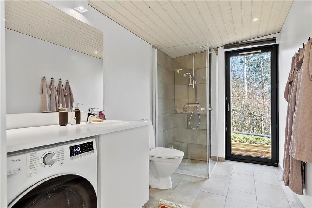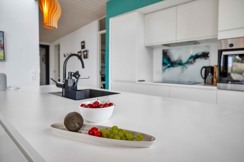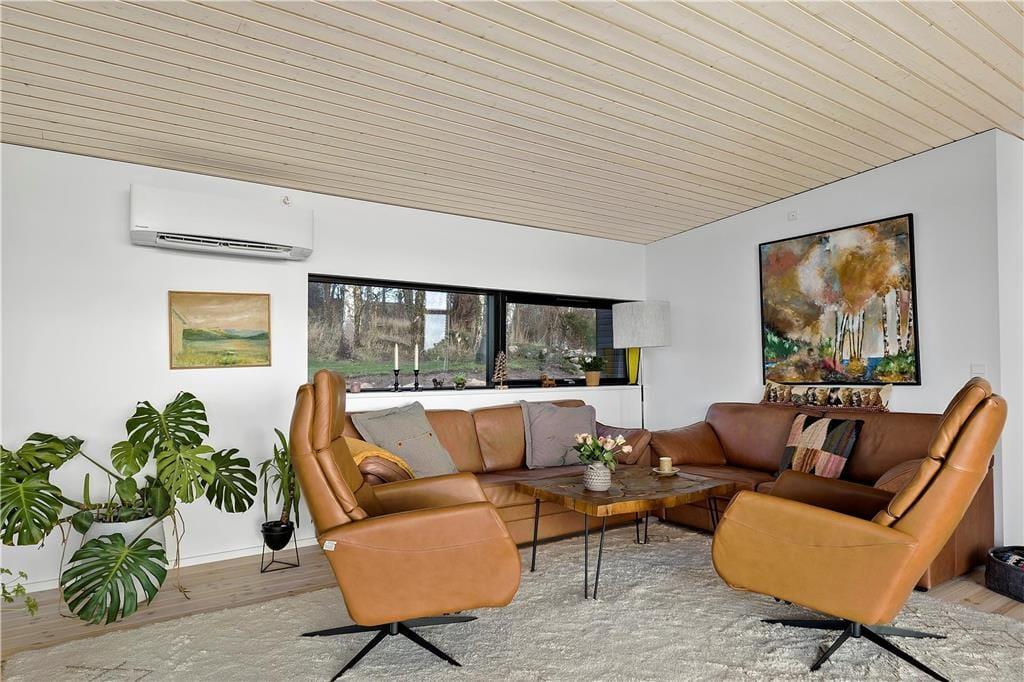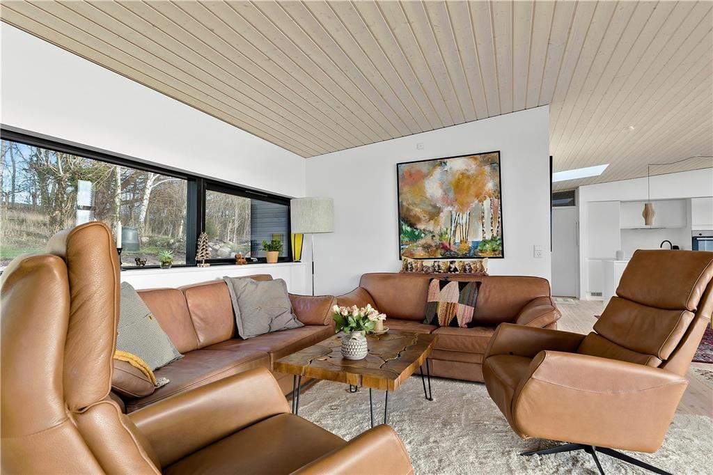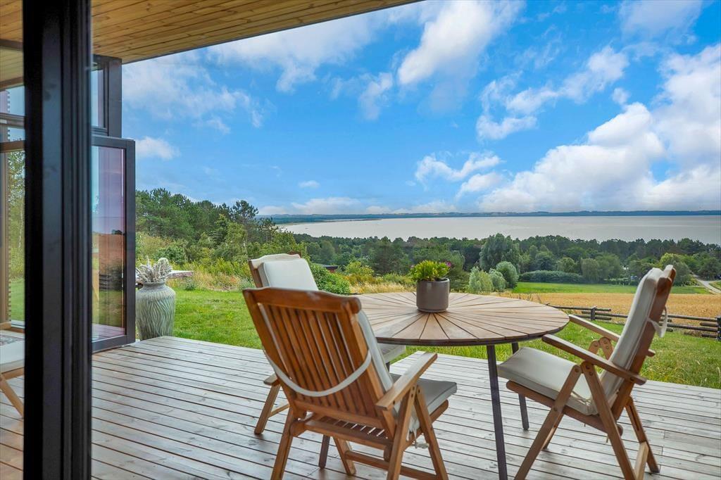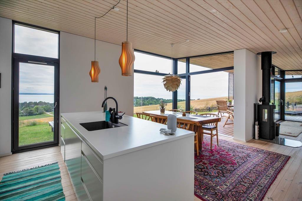 Das Ferienhaus bietet einen schönen Küchen- und Essbereich, der offen mit dem attraktiven Wohnraum verbunden ist. Dank der großen, bodentiefen Fenster begeistert der Raum mit einem herrlichen Tageslichteinfall und eröffnet Ihnen zugleich eine fantastische Aussicht über die Sejerø Bucht. Elektrische Holzjalousien sind vorhanden, die auch die Terrassen abschirmen können. Ihnen stehen in diesem wunderbaren Urlaubsdomizil drei gute Schlafzimmer mit Schrankfläche zur Verfügung. In zwei der Schlafräume finden Sie je ein Doppelbett vor. Im dritten Schlafraum stehen zwei Einzelbetten für Sie bereit. Das tolle Badezimmer bietet eine Dusche, sowie eine Waschmaschine und einen Wäschetrockner. Ein Gäste-WC ist ebenfalls vorhanden.