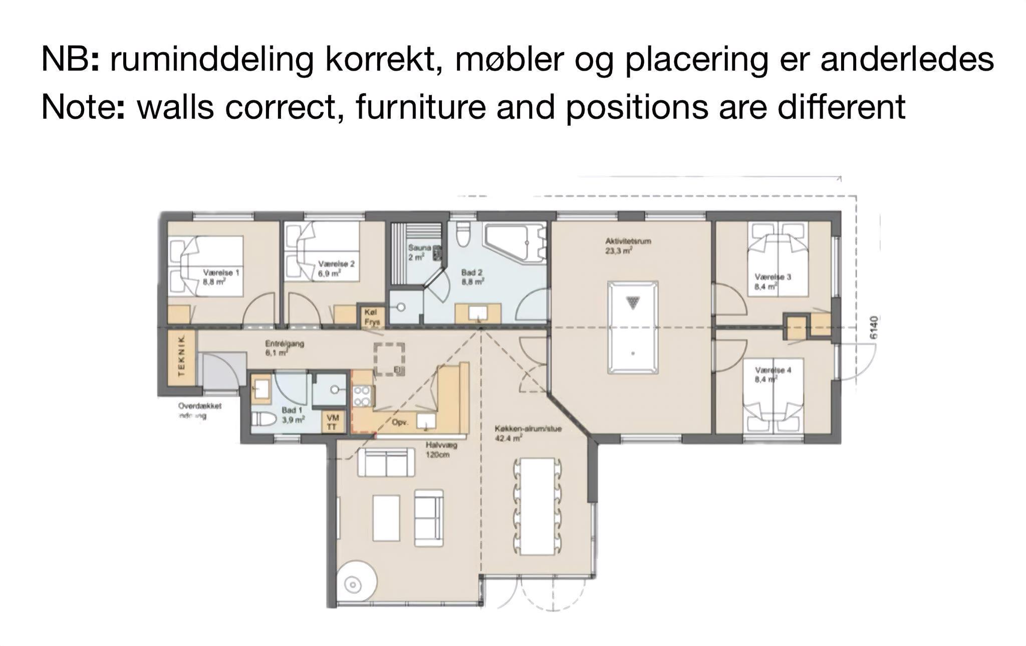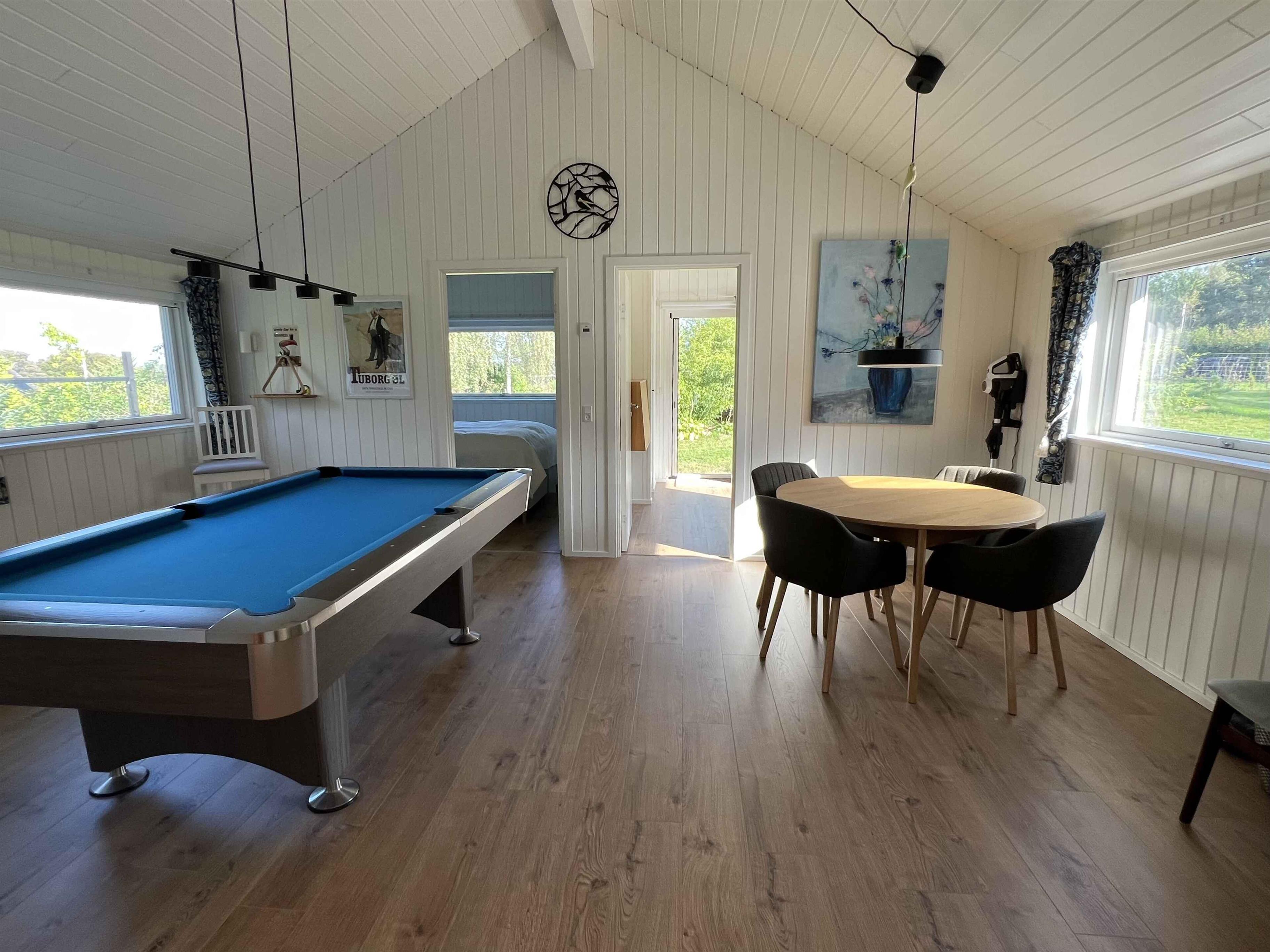 Dieses großzügige Ferienhaus mit 136 m² verfügt über vier Schlafzimmer und insgesamt acht Schlafplätze. Es ist vollständig mit Fußbodenheizung beheizt und mit komfortablen Details ausgestattet, die sofort ein Gefühl von Zuhause vermitteln. Das Haus bietet zwei Badezimmer, eines davon mit Sauna und Whirlpool, das andere mit Waschmaschine und Trockner. Außerdem gibt es eine helle Wohnküche, einen Aktivitätsraum und einen Kaminofen für gemütliche Abende. Haus und Garten: Der Garten ist eingezäunt (was schöne Rehe nicht immer davon abhält, vorbeizuschauen) und durch hohe Bäume auf den Nachbargrundstücken vor Westwind geschützt, wo Spechte und andere Vögel leben. Der Rasen eignet sich ideal für Spiele und Aktivitäten im Freien (verschiedene Spiele stehen kostenlos zur Verfügung), und auf den nach Süden ausgerichteten Terrassen laden bequeme Gartenmöbel zum Sonnen ein. Eine Holzkohlegrillstelle, ein Essbereich und eine Loungeecke mit Ecksofa sind ebenfalls vorhanden (Polster im Haus). Ein Verlängerungskabel zum Laden von Elektroautos kann ausgeliehen werden (Steckdose nahe der Haustür). Im Inneren bietet die offene Wohnküche Raum für gemeinsame Mahlzeiten am ausziehbaren Esstisch oder Entspannung auf dem großen Ecksofa vor dem Fernseher. Die Küche ist mit allem ausgestattet, was zum Kochen benötigt wird: Induktionsherd, Backofen, Geschirrspüler, Gefrierschrank und Kaffeemaschinen. Im Aktivitätsraum stehen ein Pool-/Snookertisch und Brettspiele zur Verfügung, was das Haus ideal für Familien und Freundesgruppen macht. Die Lage in Kostræde Banker bietet Zugang zu ruhiger Natur und spannenden Ausflugszielen. In wenigen Minuten erreicht man zu Fuß den Dybsø Fjord oder den örtlichen Supermarkt, während der Strand von Svinø nur 7 km entfernt liegt. Die Umgebung lädt zu Wanderungen durch abwechslungsreiche Natur mit reicher Vogelwelt, Feldern und Küstenlandschaften ein. Es gibt zahlreiche Naturerlebnisse: Im Avnø Naturzentrum führen markierte Wege und man hat die Chance, Seehunde zu beobachten. Knudshoved Odde bietet seltene Pflanzen und eine geschützte Landschaft. Für Kultur und Familienausflüge sind Schloss Gavnø mit Garten und Kletterpark, der Skovturm bei Gisselfeld oder das Køng Museum in kurzer Fahrzeit erreichbar. Die nahegelegenen Städte Næstved, Vordingborg und Præstø bieten Restaurants, Einkaufsmöglichkeiten, Museen und Aktivitäten für alle Altersgruppen. Insgesamt kombiniert das Haus Großzügigkeit, gute Ausstattung und eine Lage nah an Natur und Kultur – ideal für einen abwechslungsreichen Urlaub. Achtung: Wird nicht für gewerbliche Nutzung vermietet.