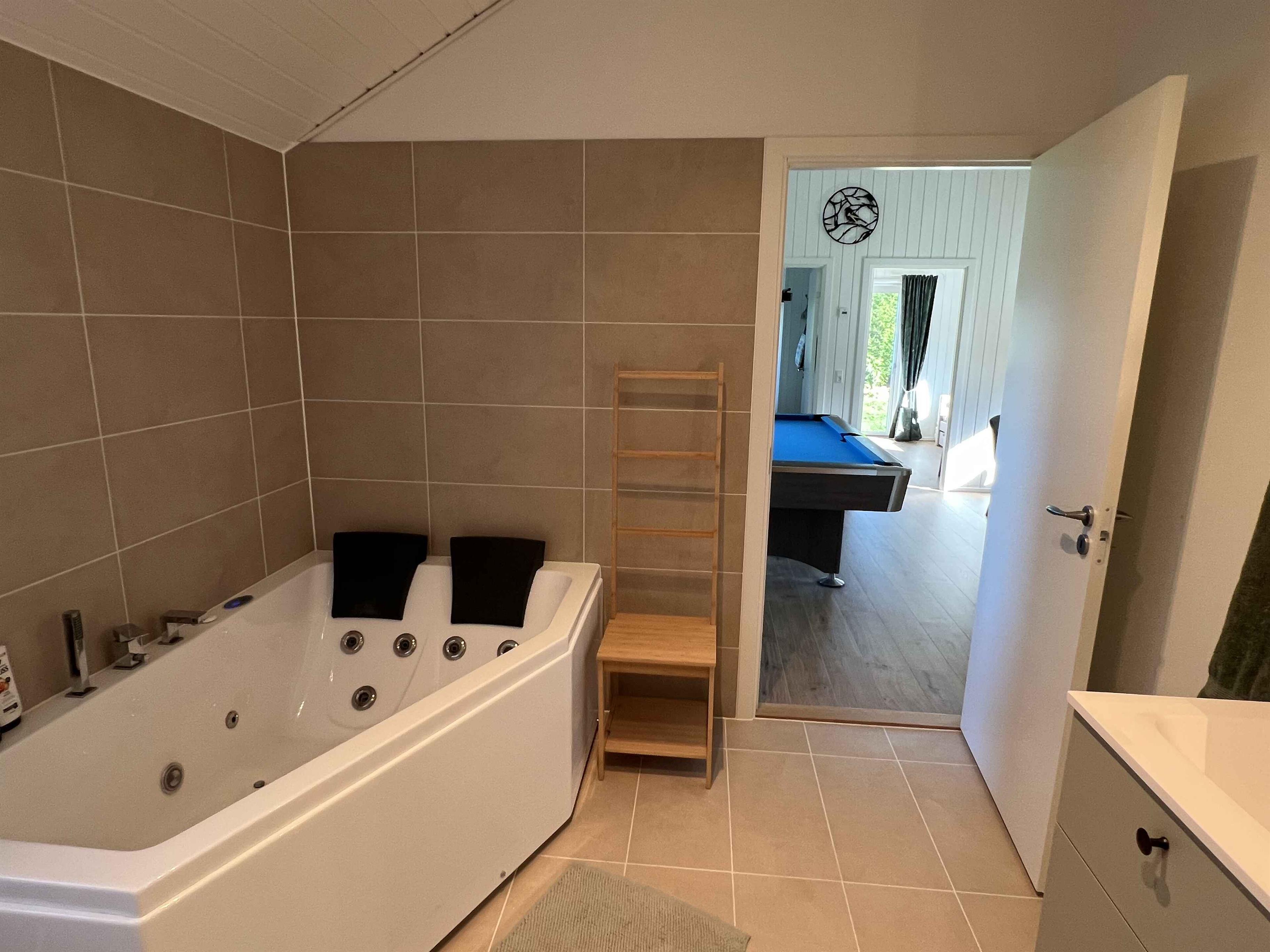 Großzügiges Öko-Ferienhaus mit Sauna, Whirlpool und Aktivitätsraum in Lundby, nahe Bucht und Strand.