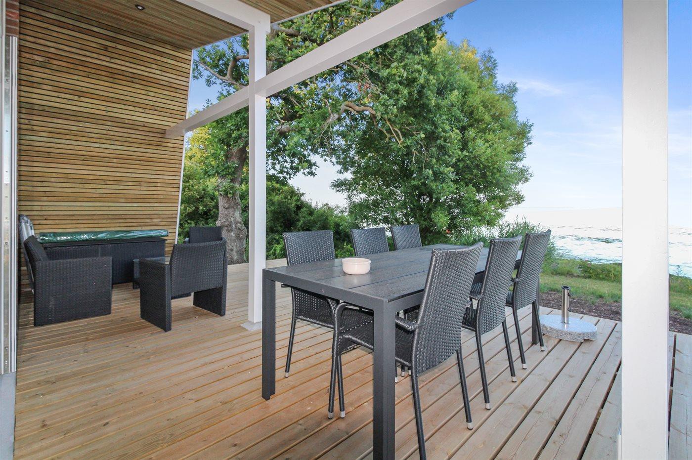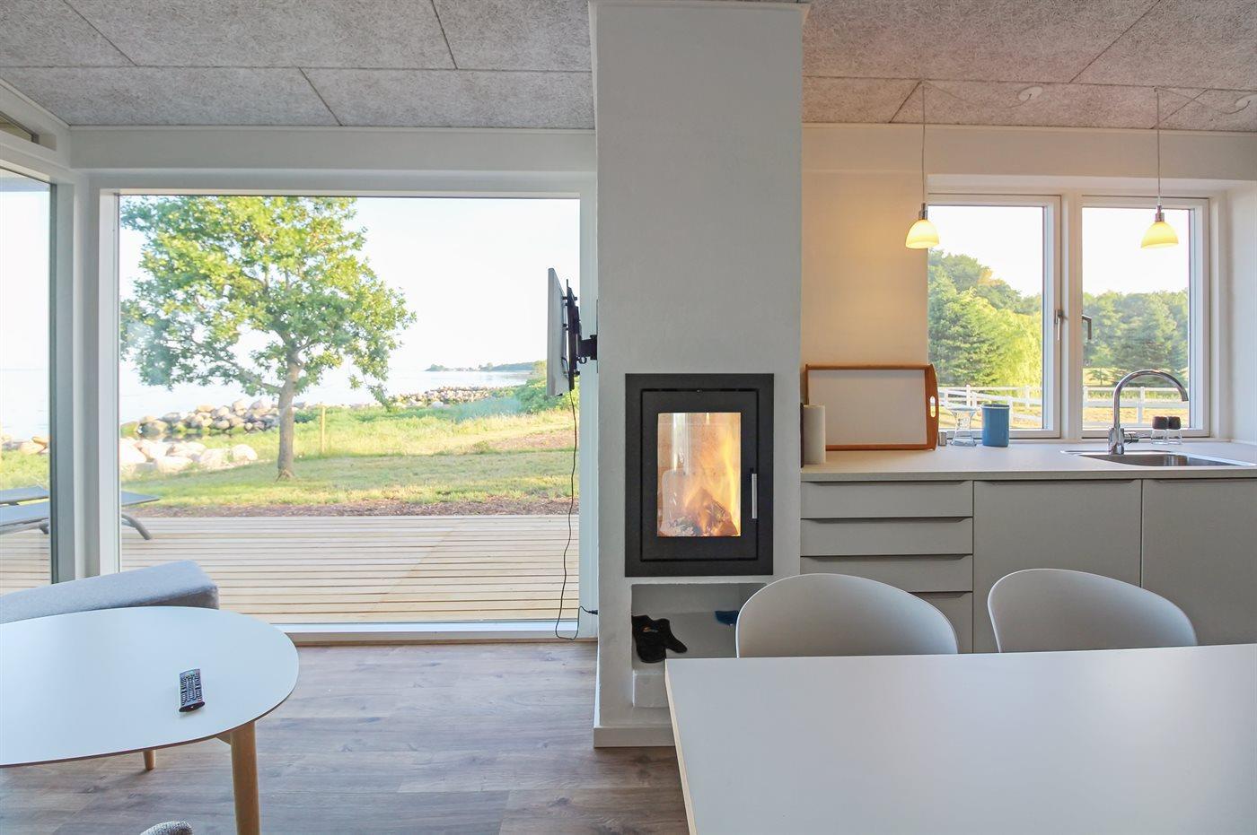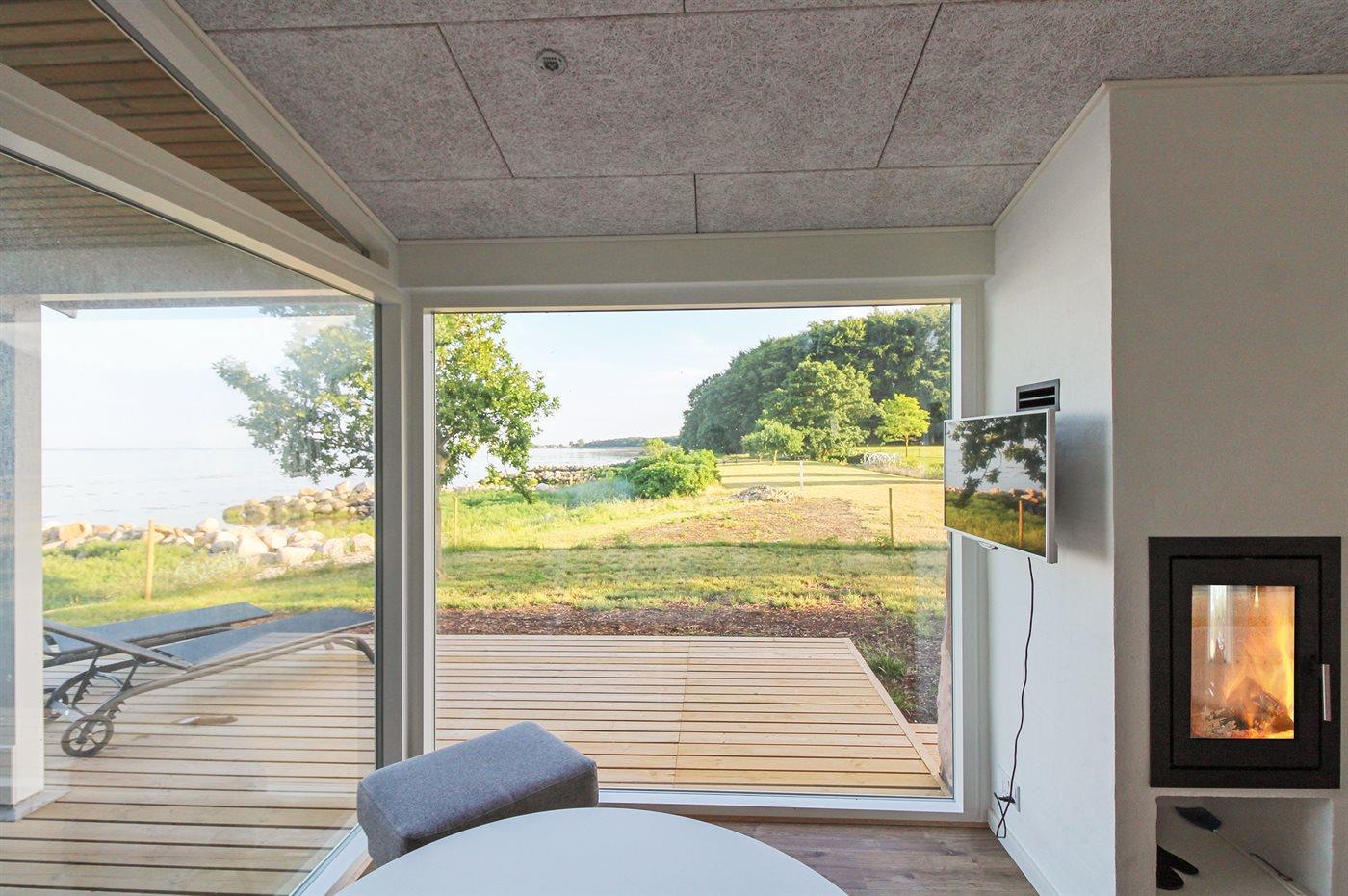 Dieses schöne und hell eingerichtete Ferienhaus liegt in erster Reihe zum Wasser hinunter. Sowohl vom Haus als auch vom Grundstück haben Sie eine herrliche Aussicht auf das Wasser mit Langeland im Hintergrund. Das Haus liegt in Verbindung mit dem Hof ”Strandagergård”, der vom Eigentümer als Teilzeit-Bauernhof betrieben wird. Auf dem Hof gibt es Pferde, Fleischrinder, Hühner, Enten und Pfaus. Das Ferienhaus liegt ein einem besonders großen, parkähnlichen Garten mit eigenem Strand, See und Bach sowie einem Wald mit guten Pfaden – perfekt für die kleine Familie oder 2 Paare, die einen Urlaub in ruhiger Umgebung verbringen möchten.