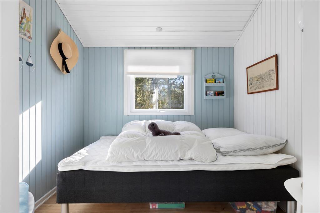 Das Ferienhaus ist in einem warmen und persönlichen Stil eingerichtet, so dass Sie sich schnell wie zu Hause fühlen werden. Die Möbel sind bequem und die feinen Details in der Einrichtung - von der Kunst an den Wänden bis zu den Nippsachen und Textilien - schaffen eine entspannte Atmosphäre mit hohen Decken, sowohl physisch als auch psychisch. Der offene Wohnbereich ist das Herzstück des Hauses, wo Küche, Essbereich und Wohnzimmer ineinander übergehen und zu Gesprächen, gemeinsamem Kochen und einem gemütlichen Morgen mit frisch gebrühtem Kaffee und Brot aus der Bäckerei in Sæby einladen. Wenn sich der Tag dem Ende zuneigt, kann man es sich auf dem Sofa gemütlich machen, während der Hund in der Ecke schlummert und die Sonne ihre letzten Strahlen durch die Fenster wirft. Das Ferienhaus strahlt alltäglichen Luxus und echte Sommeratmosphäre aus - da vergisst man leicht Zeit und Ort.