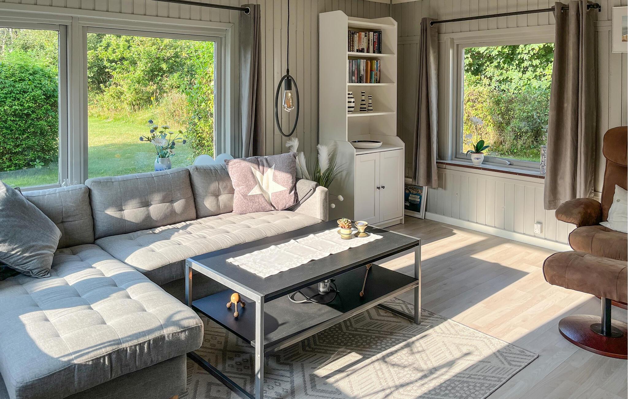 Eingebettet in einen schönen, blickgeschützten Garten und unweit der Küste heißt Sie dieses reizvolle Ferienhaus mit der ganzen Familie willkommen. Lassen Sie sich beim Kochen vom Blick ins Grüne inspirieren und genießen Sie harmonische Mahlzeiten am knisternden Kaminofen. Servieren Sie im hellen Wohnzimmer Kaffee und Kuchen und machen Sie es sich nach einem langen Tag an der frischen Luft auf dem Sofa gemütlich, um einen Film zu streamen oder bei einem Spieleabend zu entspannen.