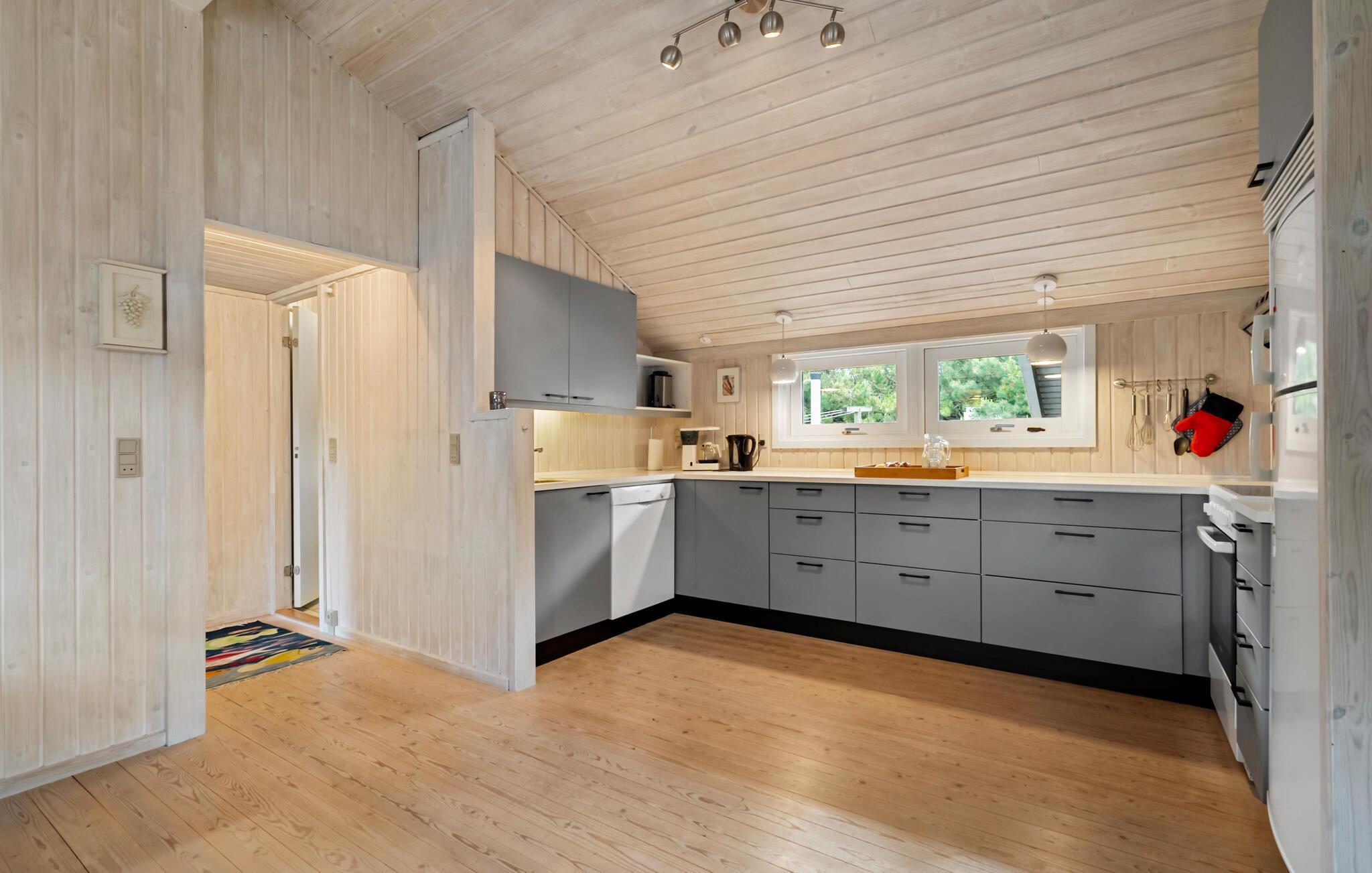 Dieses schöne Urlaubsdomizil begrüßt Sie nur wenige Schritte vom Strand von Lyngså entfernt mit einer hellen und freundlichen Wohnatmosphäre. Lassen Sie sich beim Kochen vom Blick ins Grüne inspirieren und freuen Sie sich auf harmonische Mahlzeiten im behaglichen Essbereich. An kühlen Tagen können Sie den Kaminofen entfachen, nach einem langen Strandspaziergang im Whirlpool entspannen oder sich wohlige Momente in der Sauna gönnen. Streamen Sie einen Film oder widmen Sie sich Ihren Liebsten bei einem gemütlichen Spieleabend auf dem Sofa.