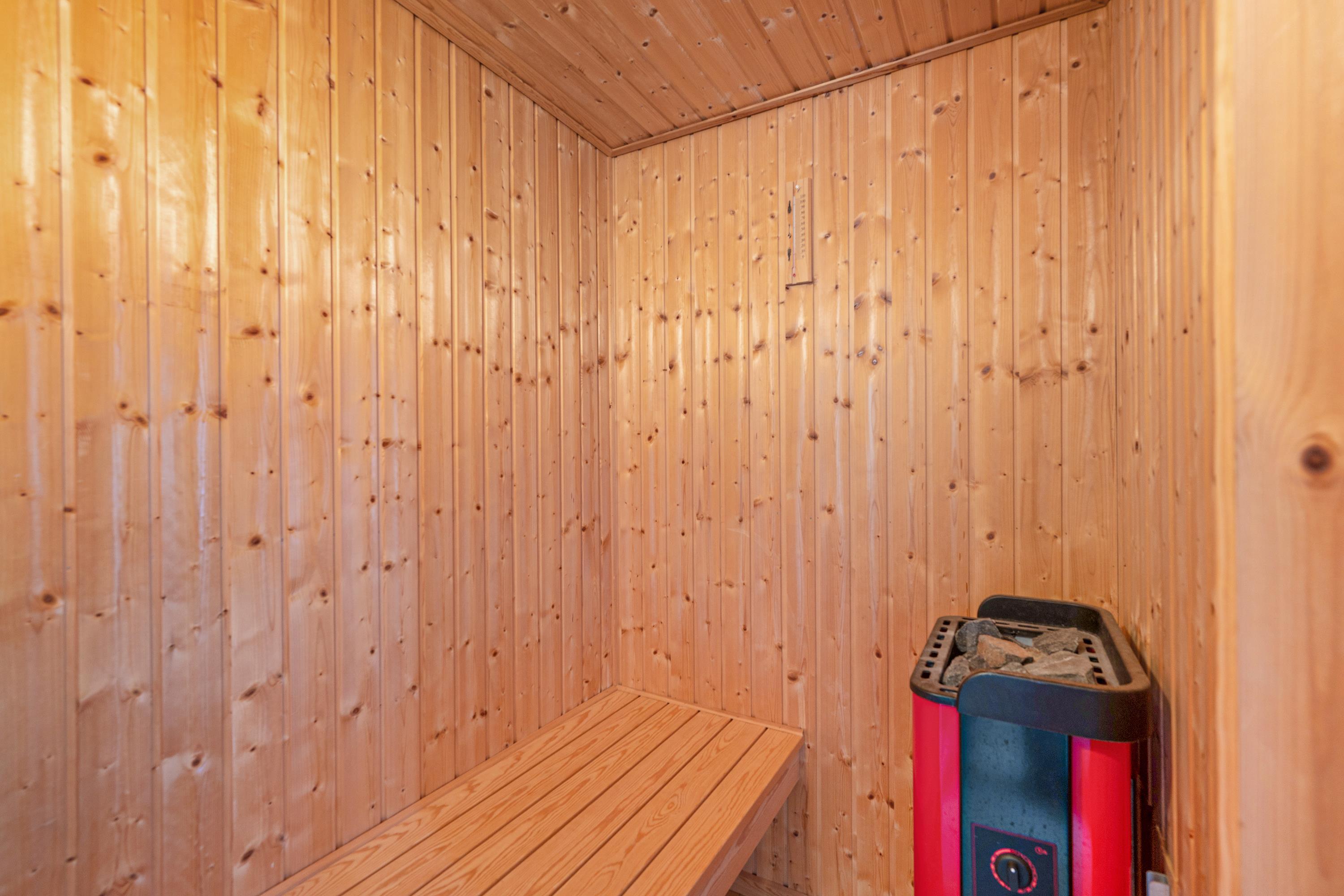 Das Haus verfügt über 3 Schlafzimmer – 2 gute Zimmer mit Doppelbetten, Breite 180 cm und 140 cm, und 1 Zimmer mit 2 Einzelbetten.. Großes, schickes Badezimmer mit Fußbodenheizung und Dusche, Whirlpool, Waschmaschine und Trockner. Vom Badezimmer besteht Zugang zur Sauna. Internetzugang.