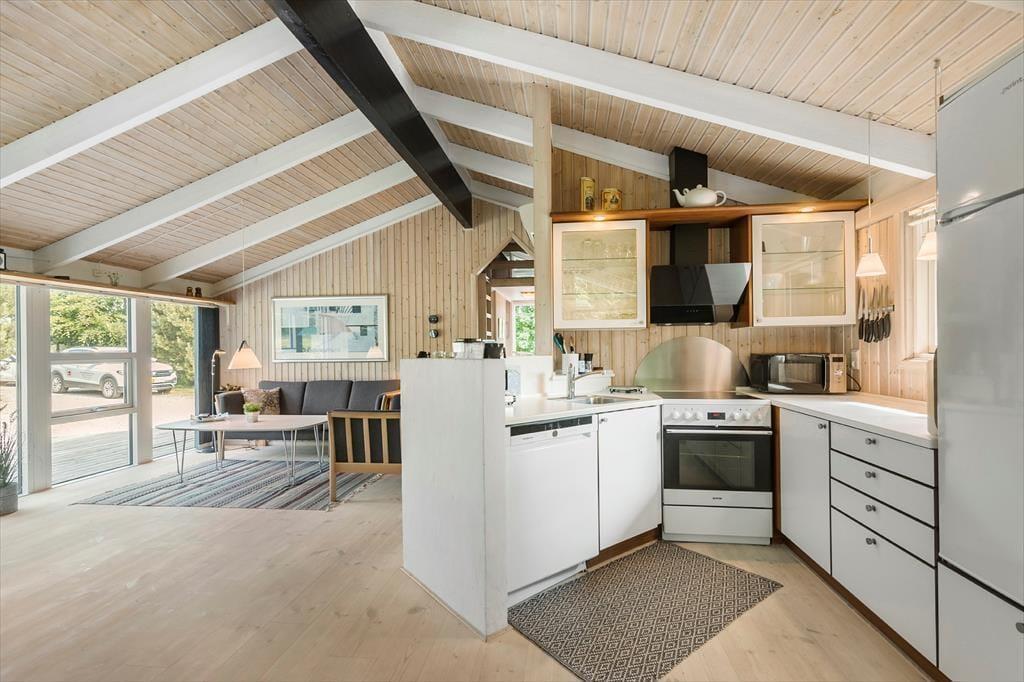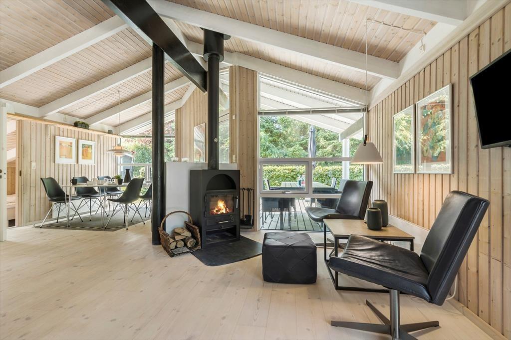 Træd ind i et lyst og indbydende feriehus, hvor varme trædetaljer og store vinduespartier skaber en hyggelig og hjemlig atmosfære. Her mødes funktionalitet og komfort med moderne køkken, lækre badeløsninger og indbydende opholdsstue – perfekt til samvær med familien eller vennerne. Efter en dag fuld af oplevelser kan I rulle jer ud i sofaen, hvor tændte lamper og blidt dagslys inviterer til afslapning. Der er tænkt på det hele – med komfortable senge, opbevaringsmuligheder og et smagfuldt interiør, så I hurtigt føler jer hjemme.
