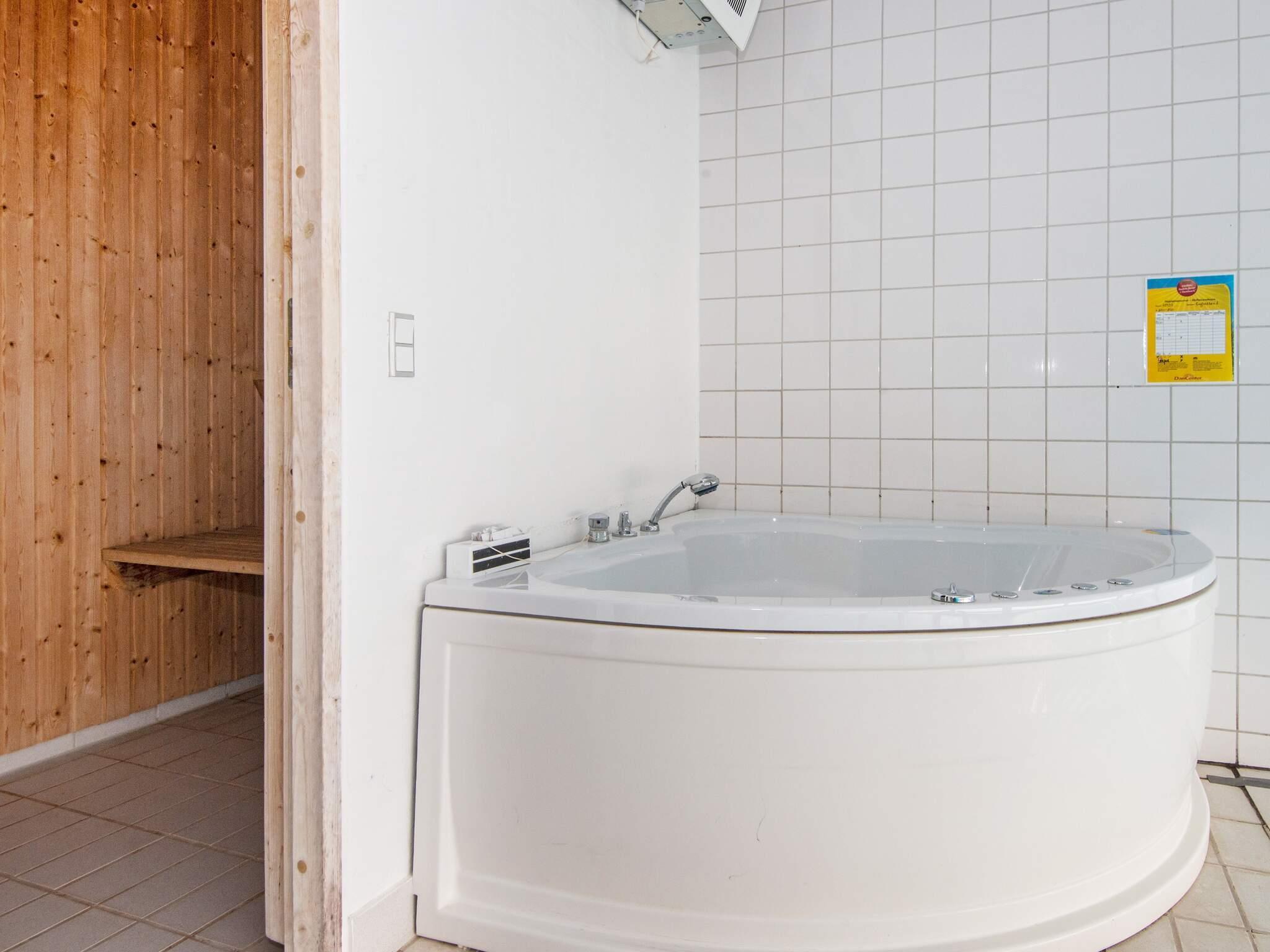 Whirlpool und Sauna. Große Fenster trennen den Poolbereich von dem Rest