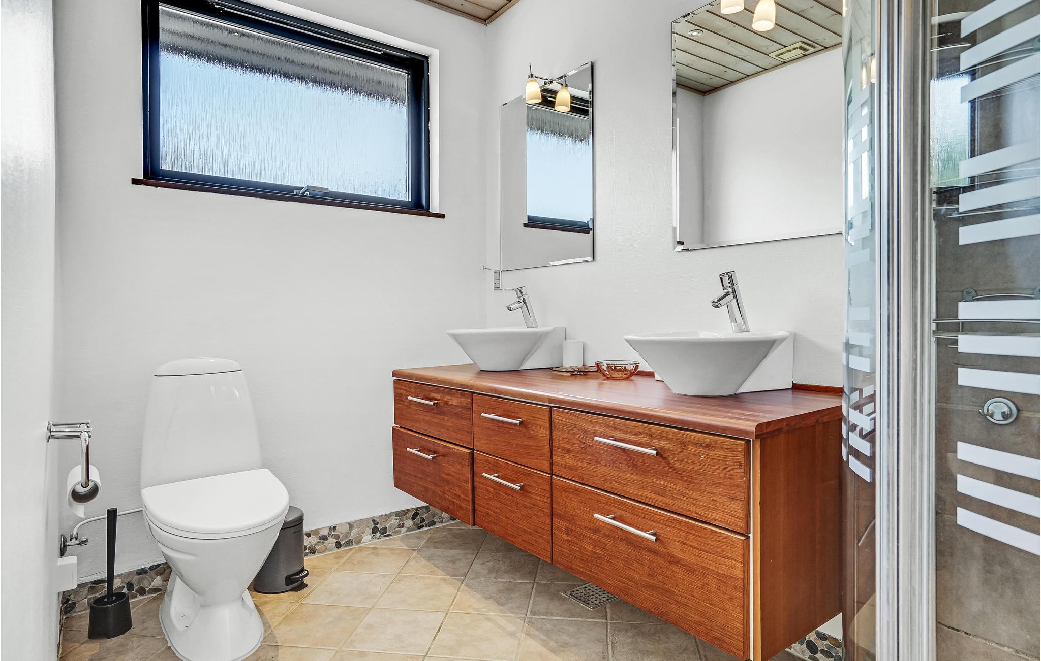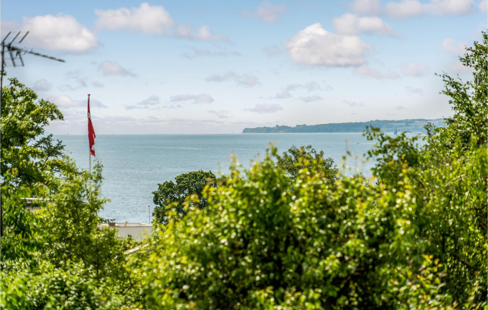 Großes Familienferienhaus mit Aktivitätsraum, Terrasse, finnischem Holzbad und Meerblick in Lyngsbæk Strand, Dänemark.