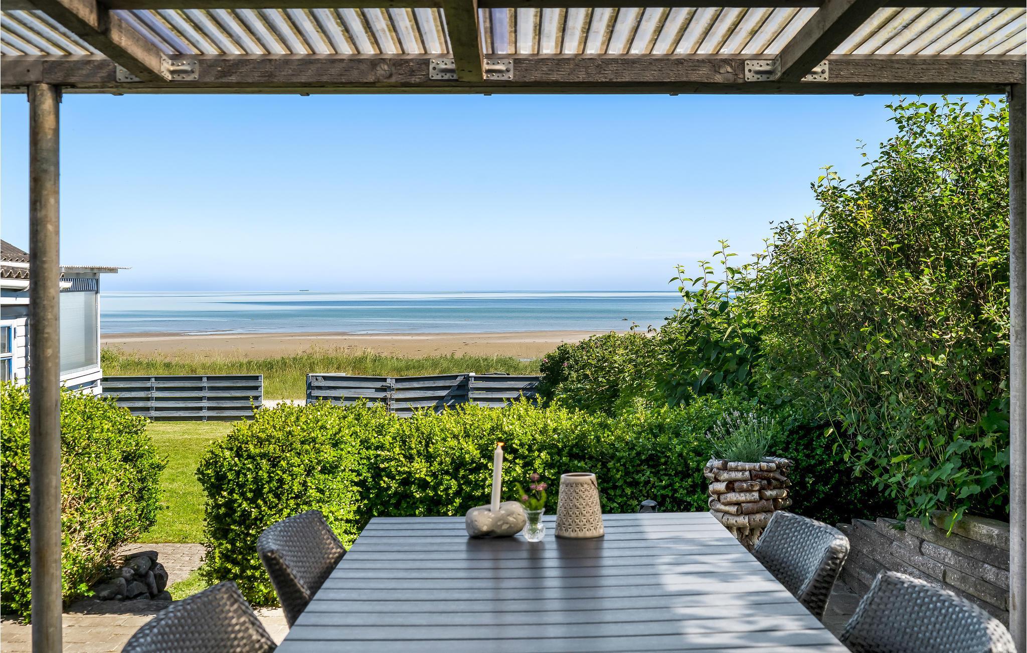 Dieses charmante, gut gepflegte Ferienhaus liegt direkt an der Küste von Lystrup mit spektakulärem Panorama-Meerblick.