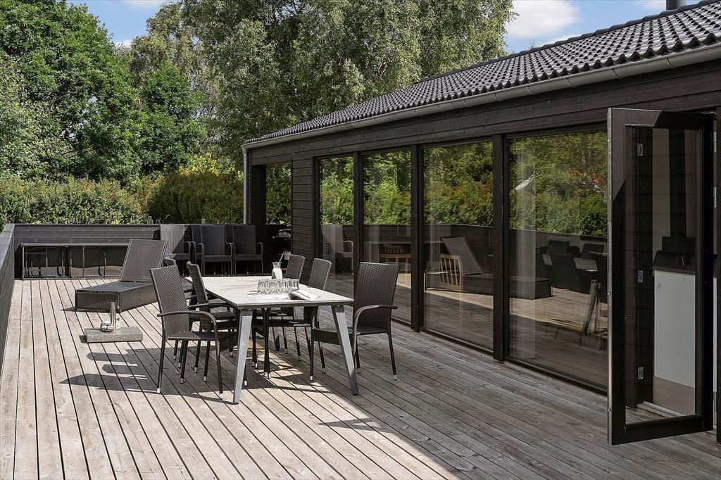 Das Ferienhaus liegt auf einem schönen Grundstück mit Ausblick über die Landschaft. Hier finden Sie Ruhe und Erholung. Der Garten bietet viel Platz zum Spielen und Entspannen, und auf den zwei großen Holzterrassen können Sie den ganzen Tag über die Sonne genießen.