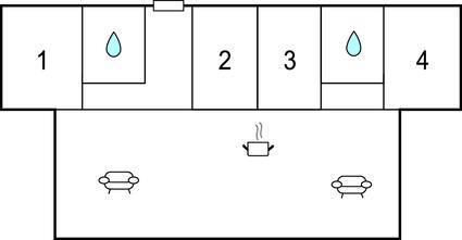 Badezimmer (nr. 1) - WC. Warmes und kaltes Wasser. Dusche