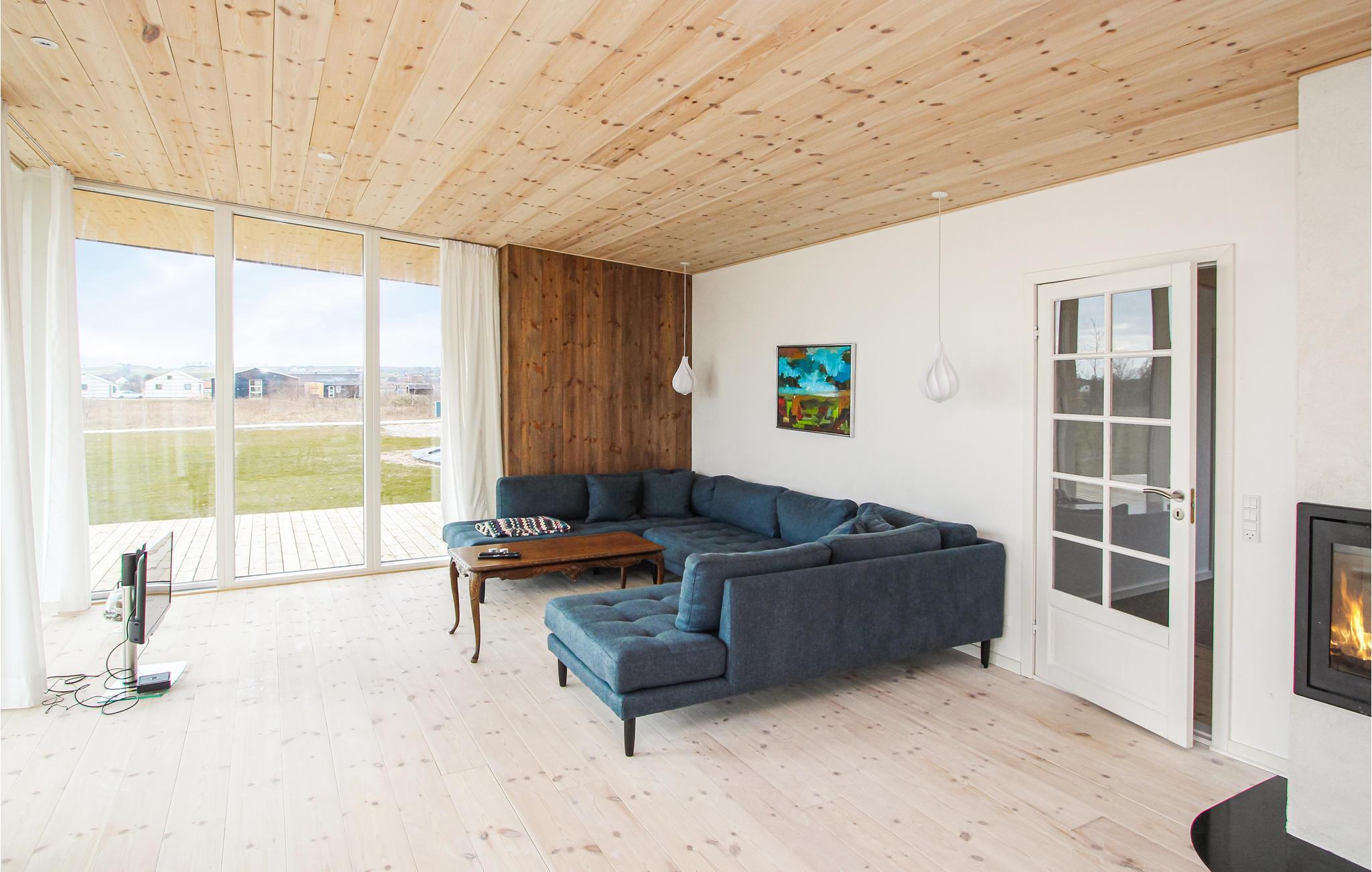 Modernes Ferienhaus auf Samsø mit heller Ausstattung und Kamin für entspannte Urlaubstage.