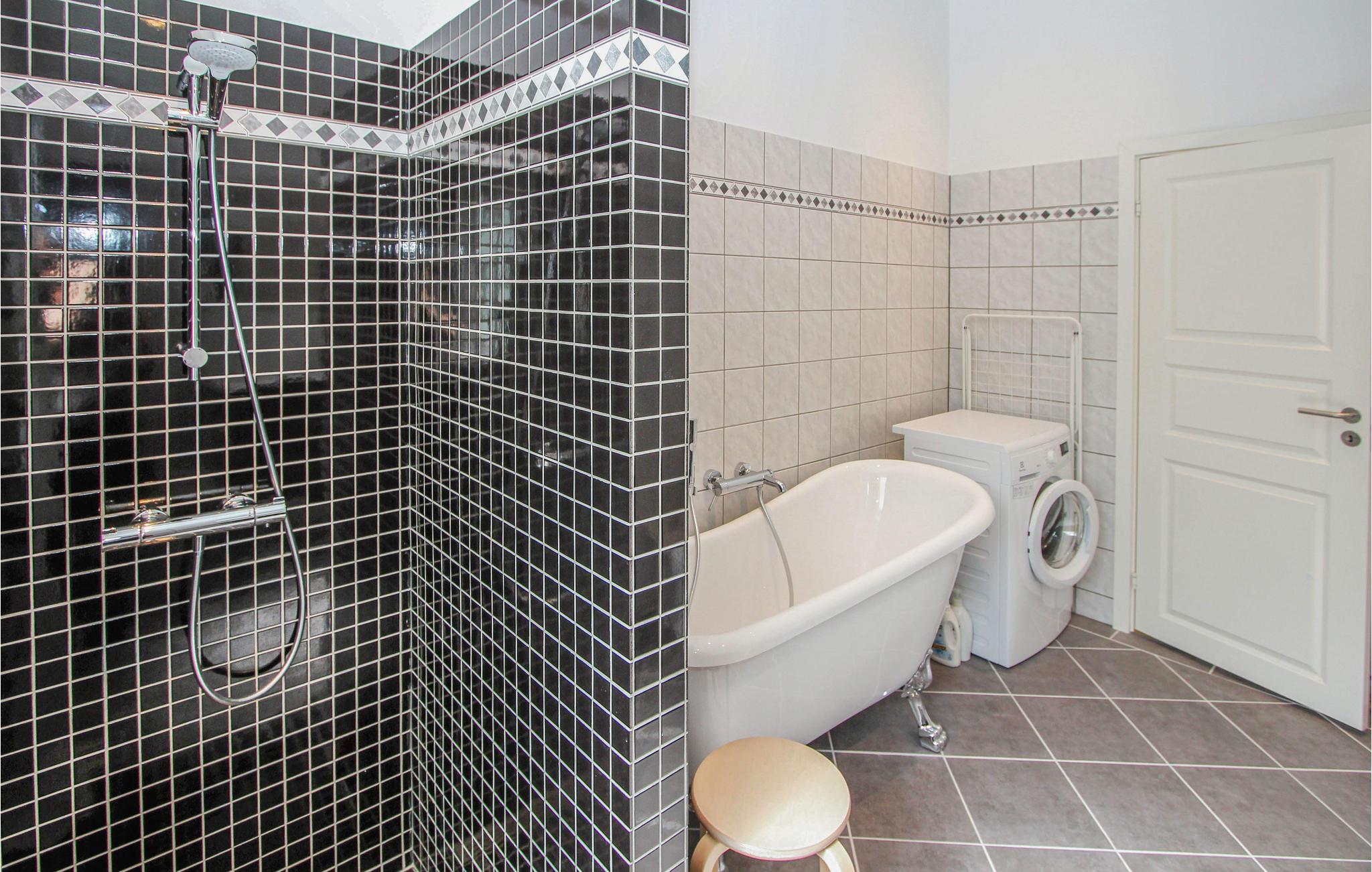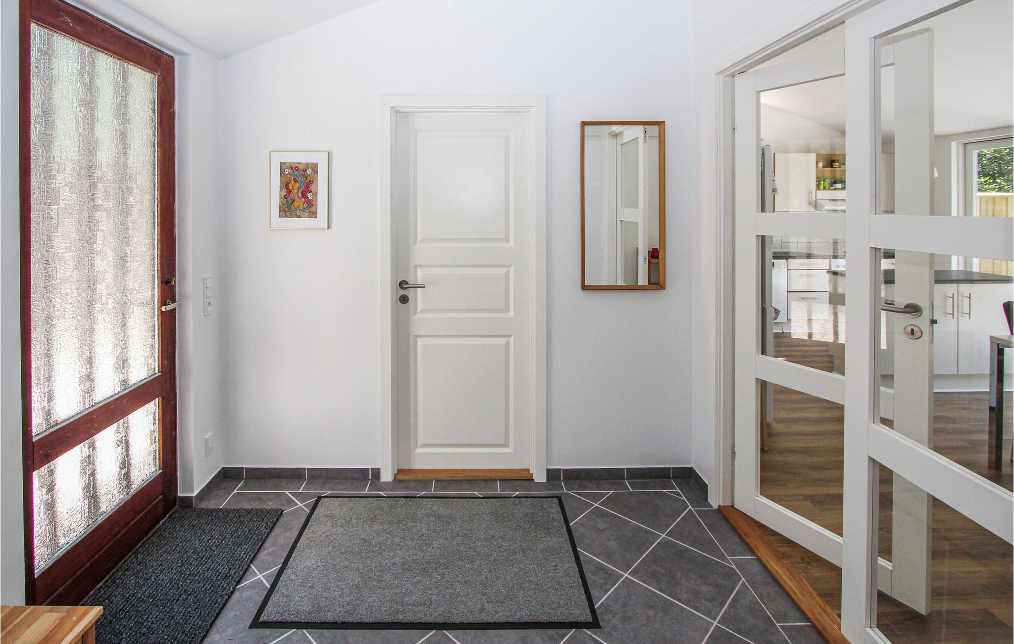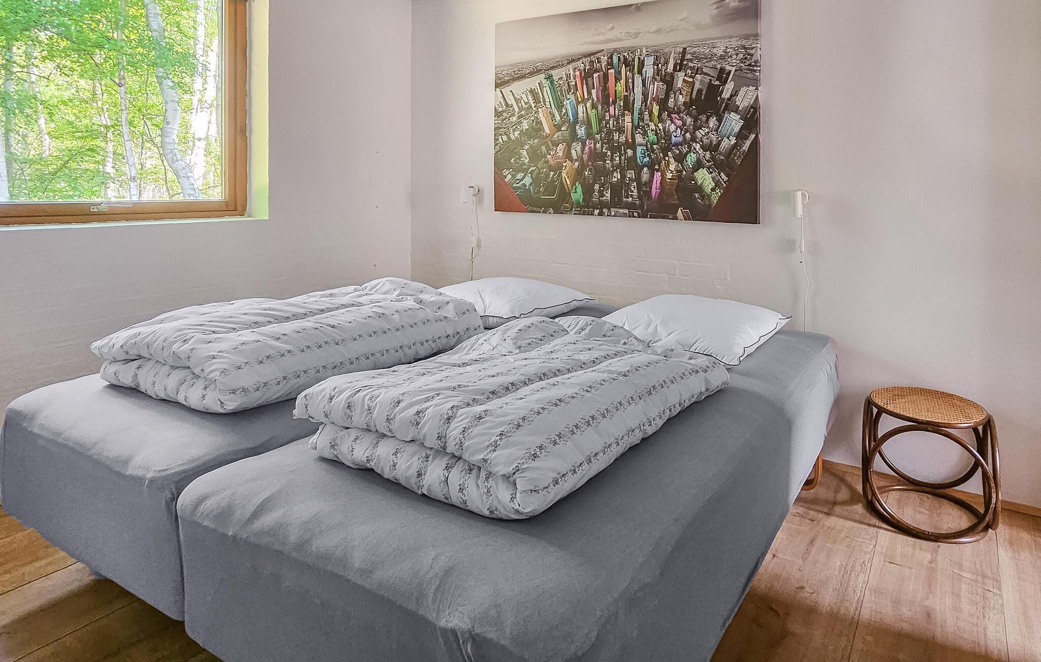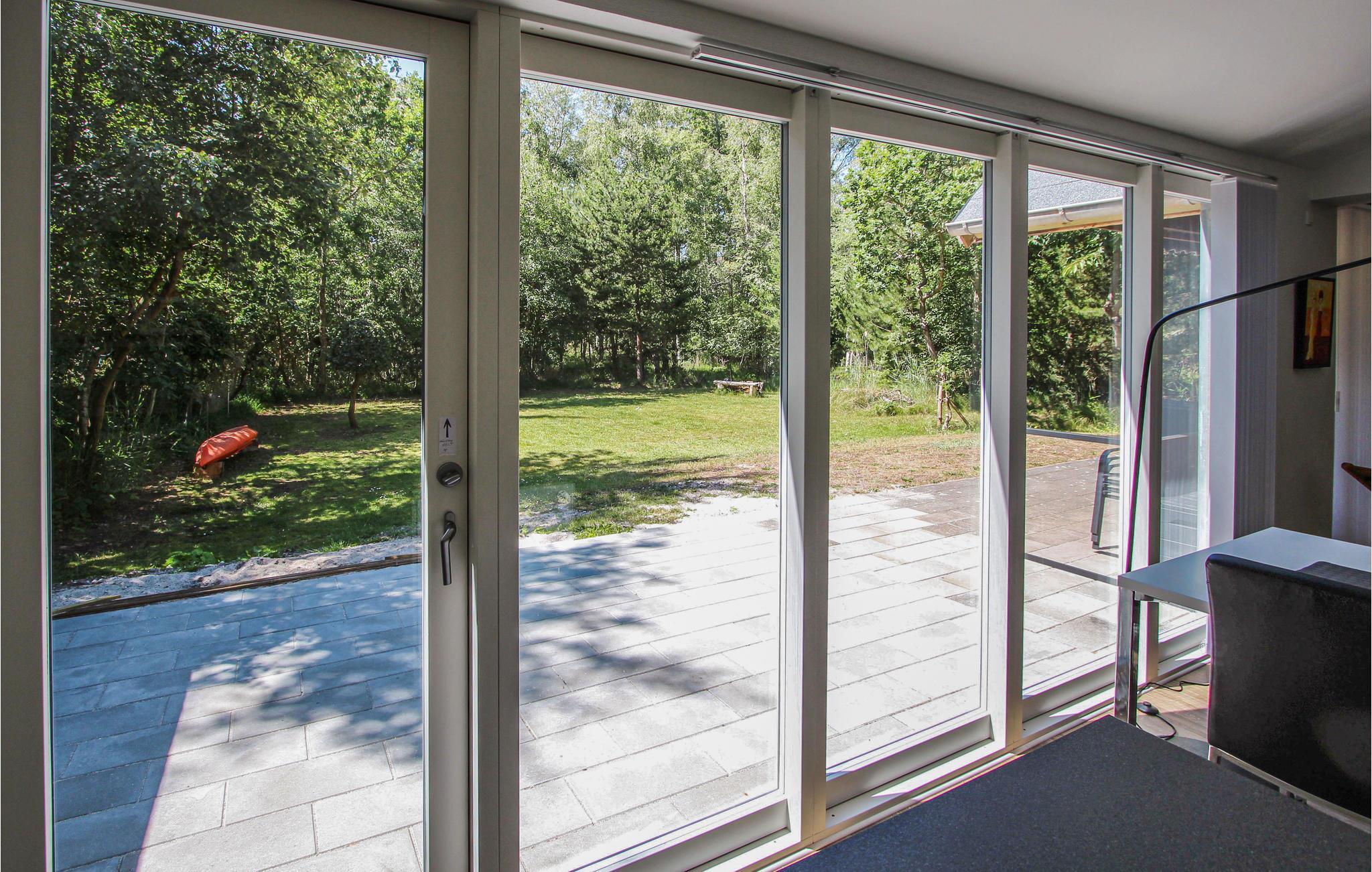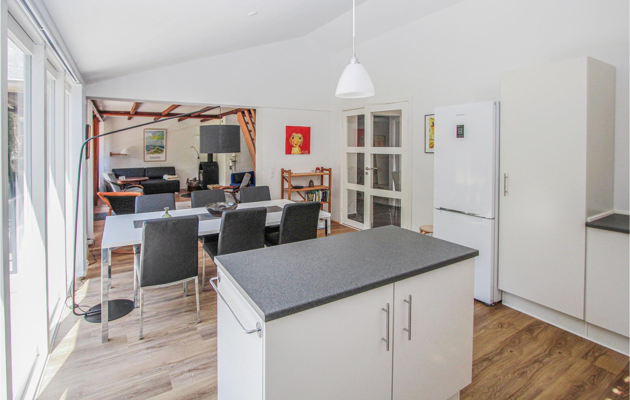 Pittoresk umgeben von hohen Bäumen begrüßt das Ferienhaus Sie nur wenige Schritte von einem guten Badestrand entfernt. Die hellen Räume sind stilvoll möbliert, geschickt platzierte Holzelemente verleihen der Einrichtung eine ansprechende Wärme. In diesem schönen Rahmen können Sie so richtig entspannen. Nehmen Sie im Wohnbereich in den bequemen Möbeln Platz, die großflächige Fensterfront bietet Ihnen einen herrlichen Blick auf das Grün der Umgebung und lässt gleichzeitig viel Licht ins Haus. Erfreuen Sie Ihre Mitreisenden mit einem leckeren, selbstgekochten Abendessen oder lustigen Ideen für einen gemeinsamen Spieleabend, der am Kaminofen stattfinden kann.