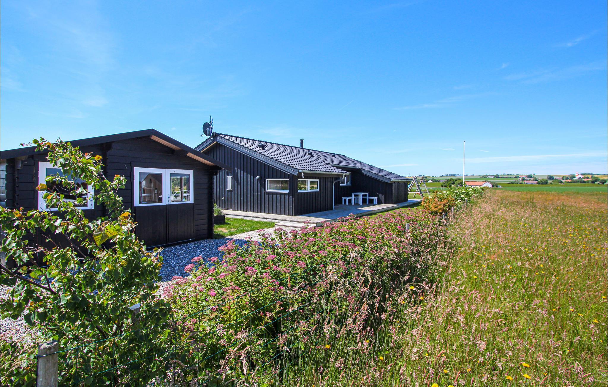 Ob gemeinsames Kochen, ausgedehntes Essen oder einfaches Entspannen auf dem Sofa - das alles findet hier vor einer wunderschönen Kulisse aus grünen Feldern und saftigen Wiesen statt, die Sie durch großflächige Panoramafenster bewundern können. Feuern Sie abends im Kaminofen an und machen Sie es sich gemütlich. Beim Nachmittagskaffee auf der Terrasse, wo Sie windgeschützt sitzen, können Sie diesen Blick in vollen Zügen genießen, bevor Sie sich auf den kurzen Spaziergang zum Strand begeben.