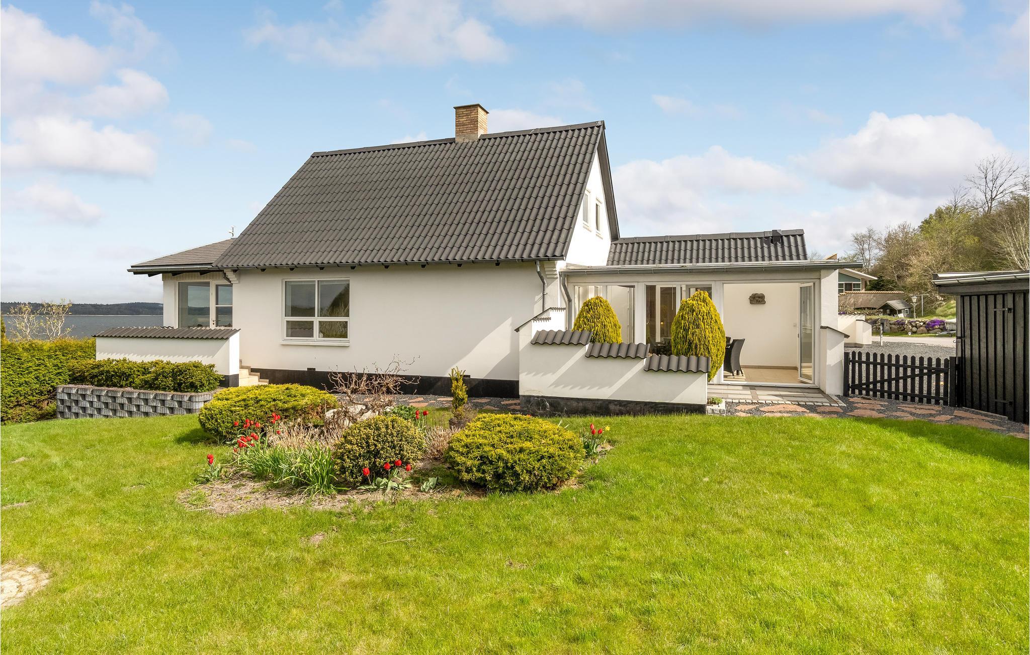 Großes Ferienhaus am Mariager Fjord mit traumhaftem Wasserblick und eingezäuntem Garten für entspannte Urlaubstage.