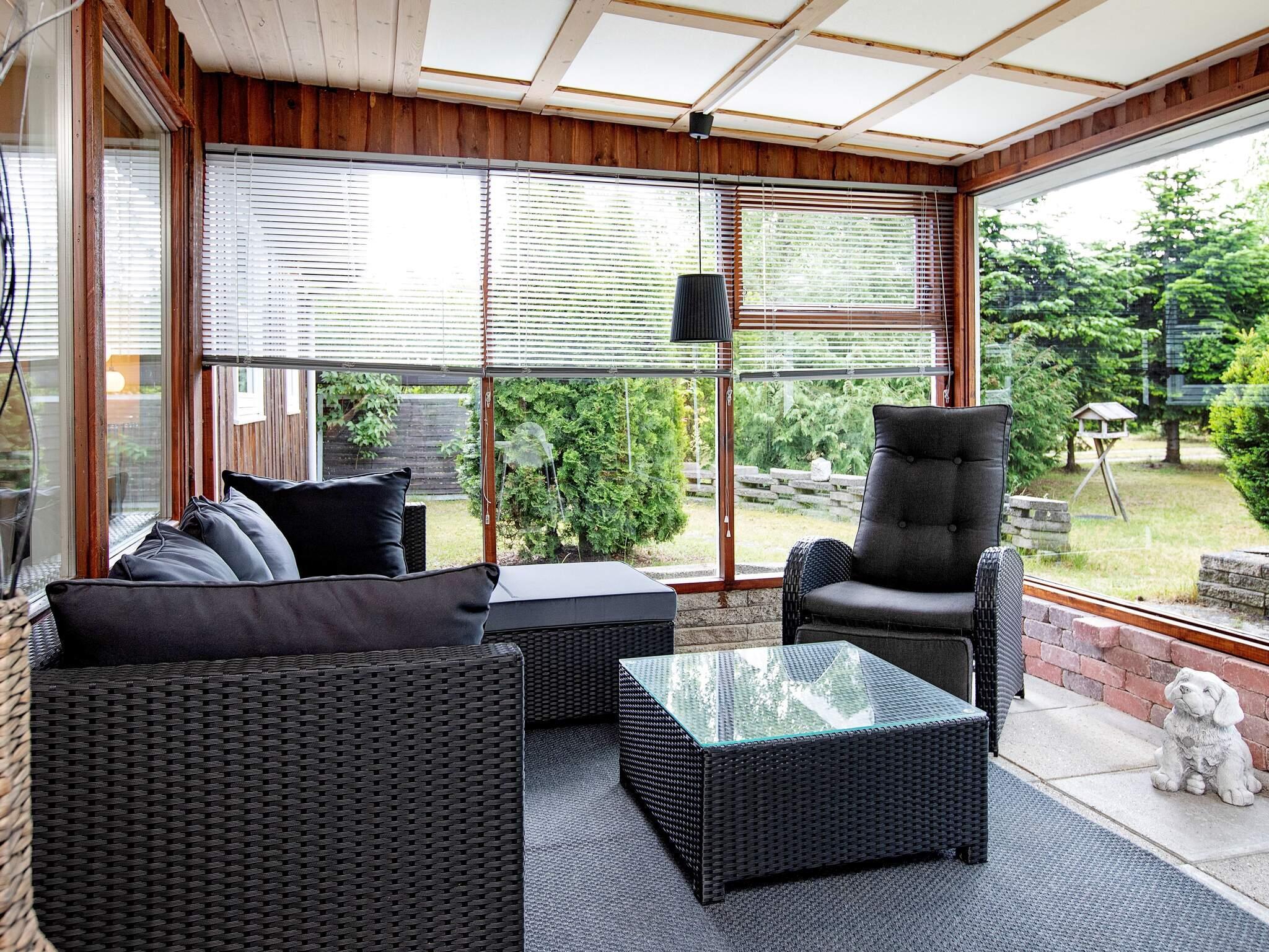 Für Kleinkinder stehen draußen auf dem gut 1.200 m2 großen Naturgrundstück Schaukeln und Sandkasten bereit. Außerdem lädt die Rasenfläche zu Spiel, Sport und Spaß im Freien ein. Während die Kinder sich austoben, können die Eltern sich in der Sonne auf der Terrasse entspannen oder an kühleren Tage die verglaste Veranda des Hauses nutzen. Das Ferienhaus selbst ist gut isoliert und kann mit seiner Ölheizung und dem Holzofen das ganze Jahr über genutzt werden. Carport am Haus.