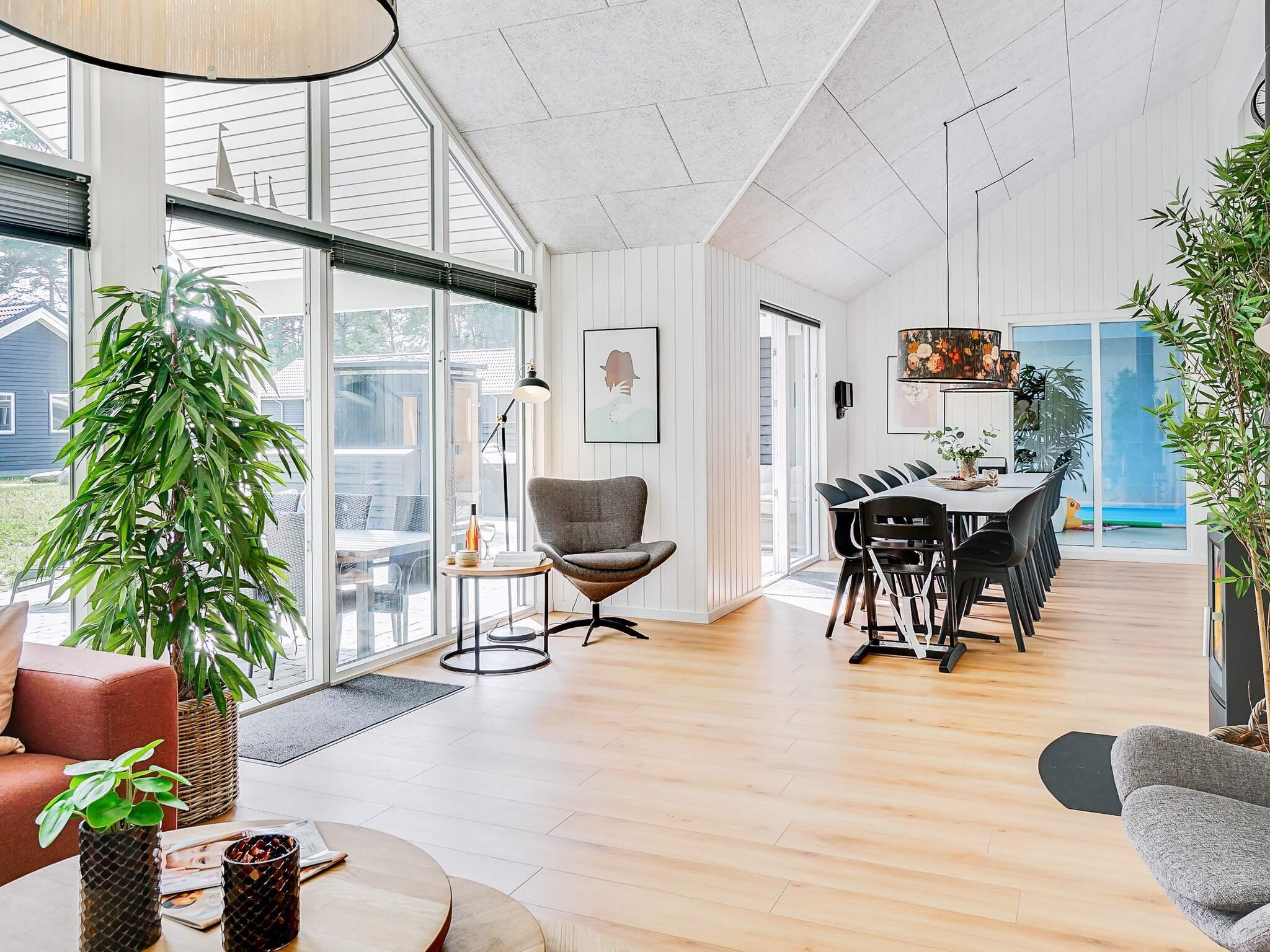 Unabhängig von der Jahreszeit kann in diesem geräumigen Ferienhaus keine Langeweile aufkommen, denn allein für den Badespaß der Familie steht ein 15 m2 großer Innenpool mit römischer Treppe und Gegenstromanlage für die Fitness bereit. Außerdem finden Sie draußen auf der Terrassenfläche einen Außen-Whirlpool sowie eine Sauna für Entspannung und Erholung. Relaxen Sie hier ausgiebig mit Ausblick zur Natur oder vielleicht zum nächtlichen zum Sternenhimmel!