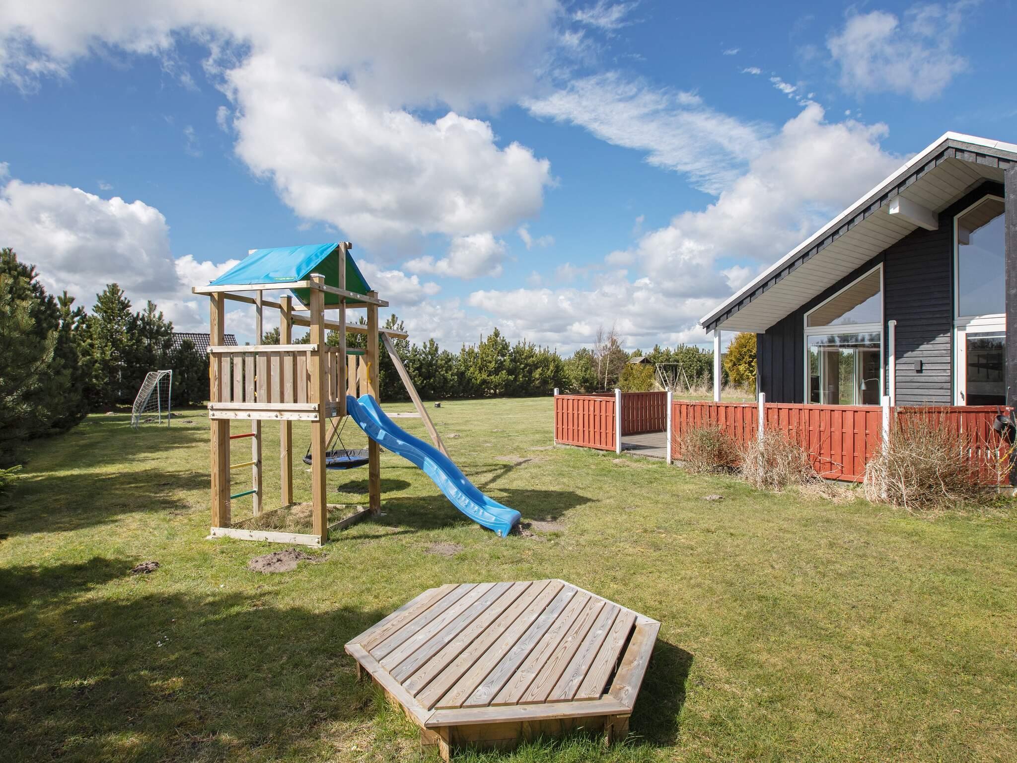 Dieses gebaute Ferienhaus liegt auf einem schönen Naturgrundstück ca. 1100 m von einem schönen Sandstrand und ca. 1000 m von Einkaufsmöglichkeiten entfernt. Kinder freuen sich über Schaukel und Sandkasten. Das Haus besitzt eine überdachte Terrasse, ein Bad mit Fussbodenheizung, Dusche, Whirlpool für 2 Personen und Sauna für 5-6 Personen, eine extra Toilette mit Waschmaschine und Trockner und eine offene Küche mit Cerankochfeldern, Mikrowelle, Kühlschrank und Geschirrspüler. Es gibt einen Fernseher mit DVD-Spieler und skandinavischen und deutschen Kanälen.