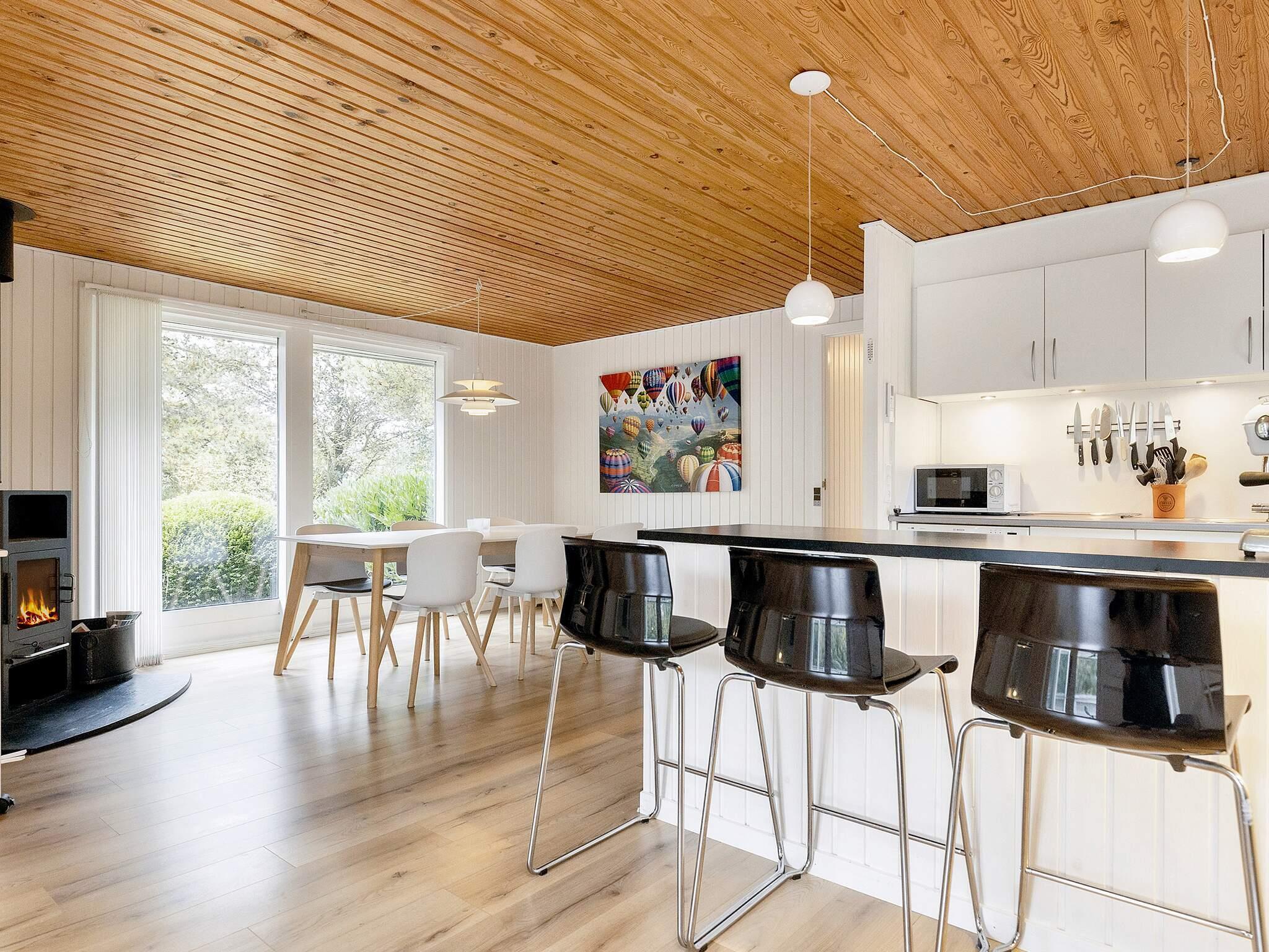 Innen erwarten Sie ein offener Küchen-/Wohnbereich für das Familienleben, u.a. ausgestattet mit Ceranfeld, Geschirrspüler und Zugang zu mehreren Terrassen. Im Wohnbereich steht u.a. eine energieeffiziente Luft-Luft-Wärmepumpe zur Verfügung, zudem gibt es einen Holzofen für kühlere Abende. Zur technischen Ausstattung des Hauses gehören eine Stereoanlage mit CD-Spieler sowie WLAN und TV mit Chromecast zum Streamen Ihrer persönlichen TV-Anbieter. Entsprechendes Equipment (Smartphone/Tablet) ist mitzubringen. Für Kleinkinder stehen im Haus ein Hochstuhl und draußen eine Schaukel sowie eine Rasenfläche zur Verfügung. Eine 14 m2 große, überdachte Terrasse lädt zum Grillen ein.