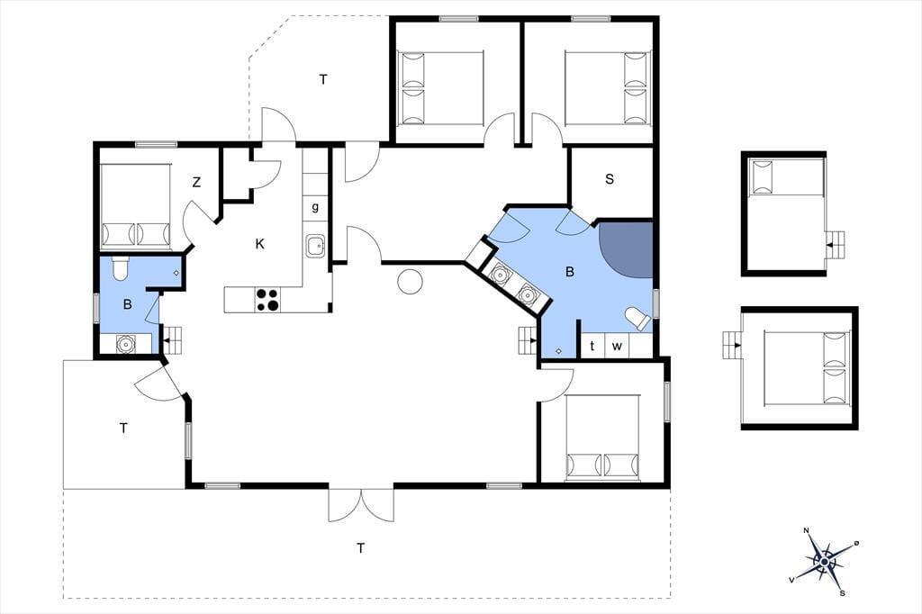 Das Ferienhaus wurde frisch renoviert und verfügt heute über eine renovierte und stilvolle Küche, zwei elegante Badezimmer und vier geräumige Schlafzimmer, eines davon mit einem ausklappbaren Tagesbett und einem Schreibtisch mit Platz für einen Computer oder zum Zeichnen – alles in hellen Farben und skandinavischem Design, das zum Entspannen und Erholen einlädt. Hier erwarten Sie hohe Decken, schöne Materialien und eine Atmosphäre, die Gemütlichkeit, Qualität und durchdachte Lösungen ausstrahlt.