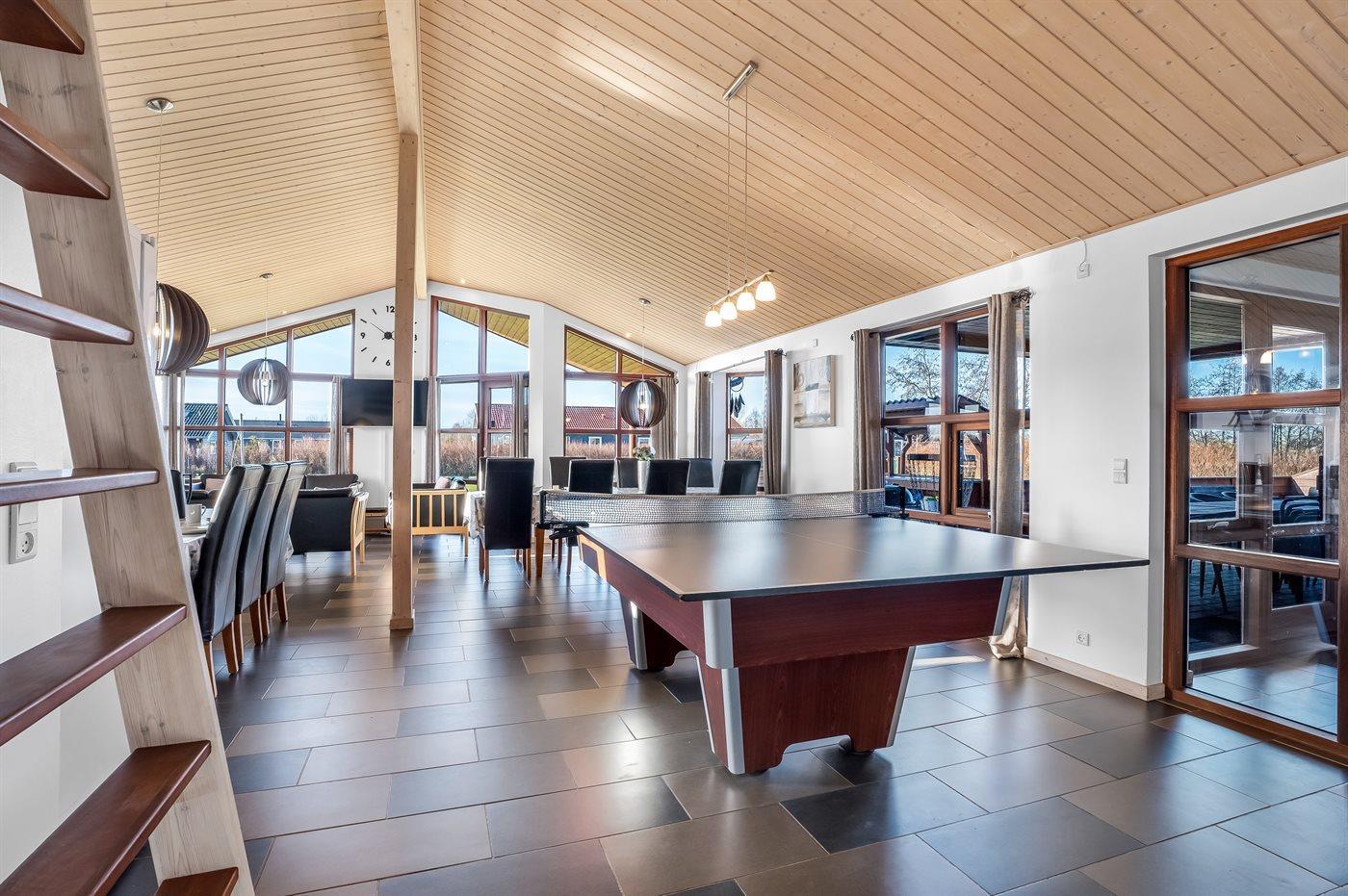 Ein schönes und familienfreundliches Ferienhaus mit Innenpool und Whirlpool sowie einem Angebot aus verschiedenen Indoor-Aktivitäten. Das Ferienhaus bietet mit einem Fußballtor und einem Minigolfplatz außerdem gute Möglichkeiten für Outdoor-Aktivitäten. Das Ferienhaus ist ein Niedrigenergiehaus, was den Verbrauch senkt. Übrigens: 4 der Schlafplätze befinden sich im offenen Obergeschoss des Hauses.