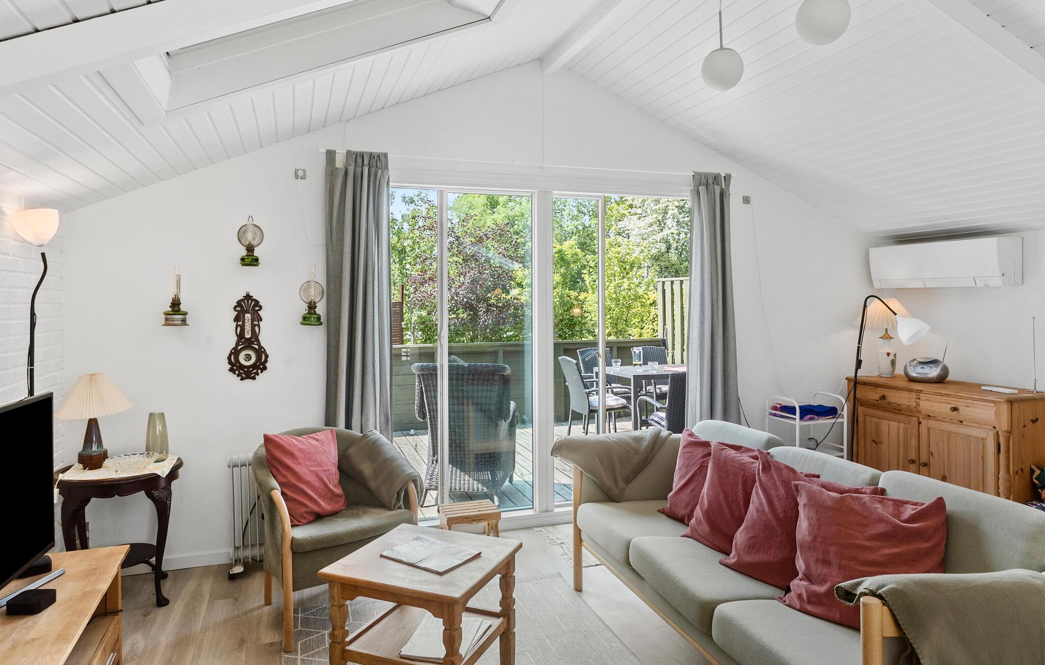 Ruhiges Ferienhaus mit großer Sonnenterrasse nahe dem familienfreundlichen Sandstrand in Marielyst, ideal für entspannte Tage am Meer.