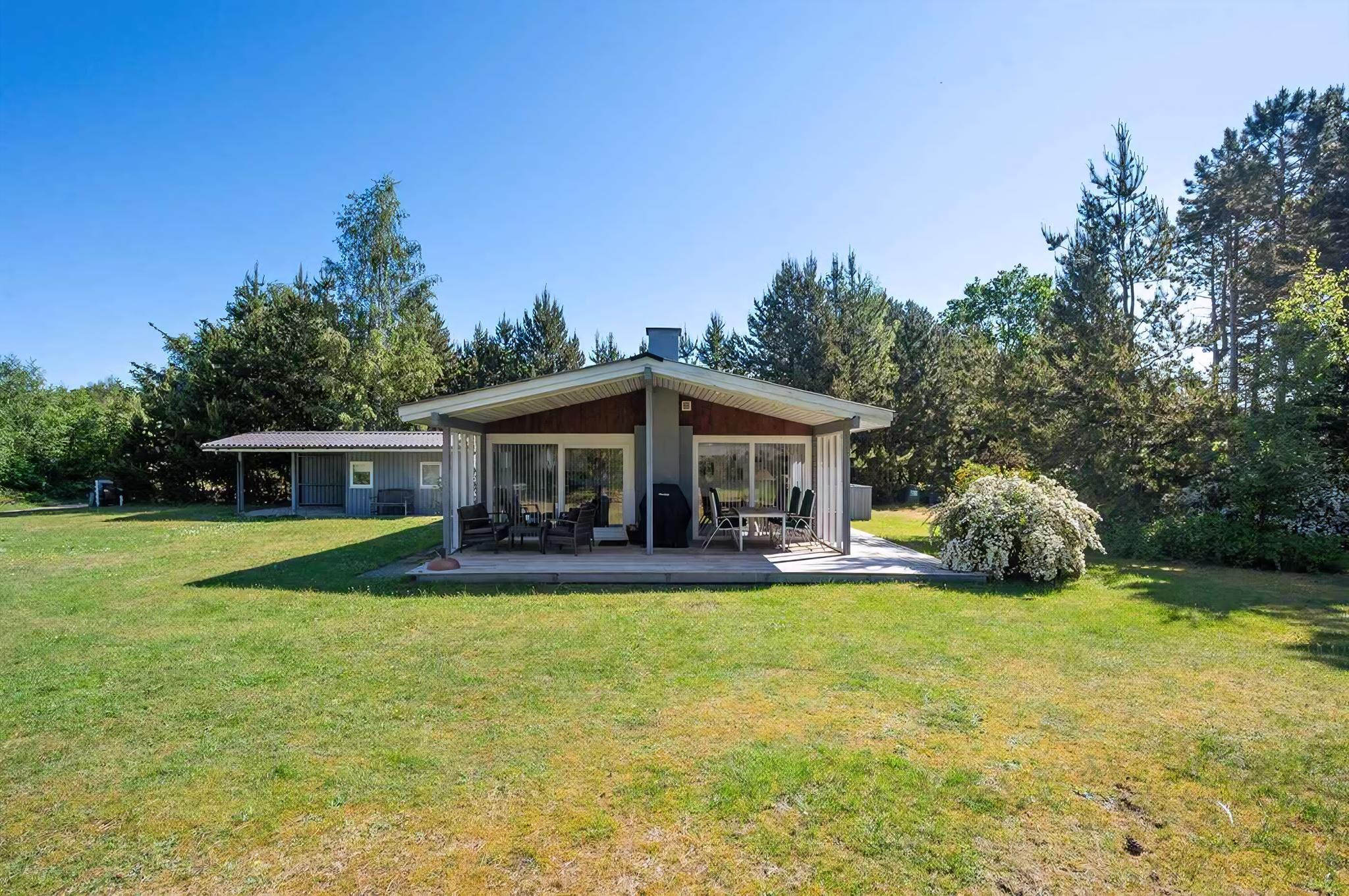 Nur 150 m vom Meer entfernt liegt dieses gut ausgestattete Ferienhaus auf einem schönen Naturgrundstück. Es verfügt über 40 m² Terrasse, davon 15 m² überdacht – ideal, um Ruhe und Natur auch bei Regen zu genießen.