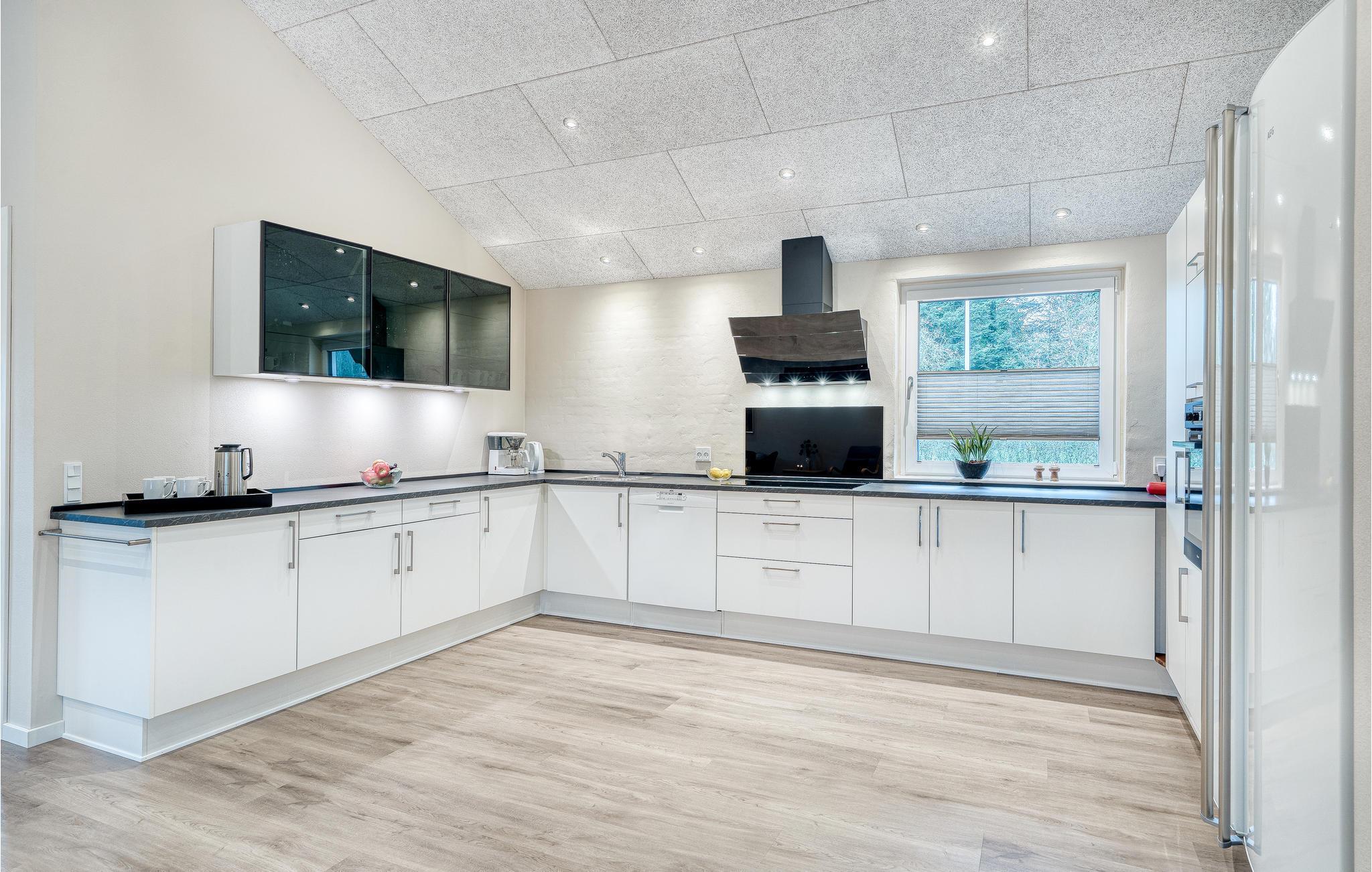 Willkommen in diesem modernen und geräumigen Ferienhaus, das die ideale Unterkunft für Ihren Großfamilienurlaub bietet. Kommen Sie an und entspannen Sie sich umgehend. Der große und offene Wohnraum wird zum natürlichen Treffpunkt Ihrer Familie und bietet Ihnen viel Platz, um in der geräumigen und vielseiteigenen Küche den Kochlöffel zu schwingen, es sich auf den Sofas bequem zu machen und einen guten Film zu schauen oder am Esstisch zu spielen.