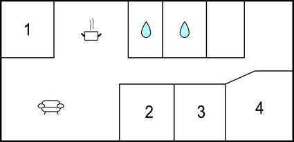 Badezimmer (nr. 1) - WC. Warmes und kaltes Wasser. Dusche