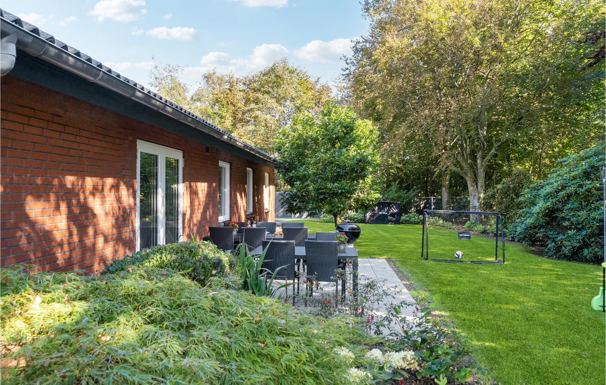 Modernes Ferienhaus in Mejls bei Varde mit großem Garten und Terrasse für erholsame Urlaubstage.