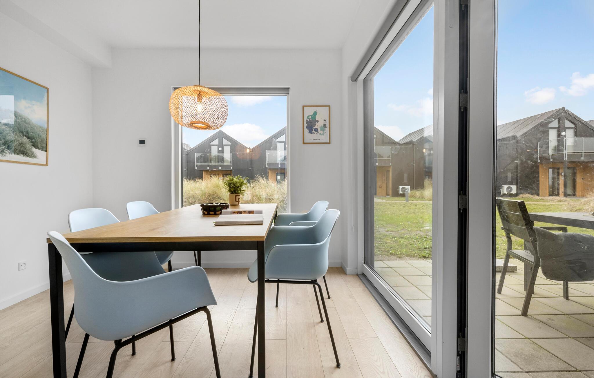 Moderne Ferienwohnung mit Meerblick in Westseeland, nahe Sandstrand und Hafen, ideal für entspannte Urlaubstage.