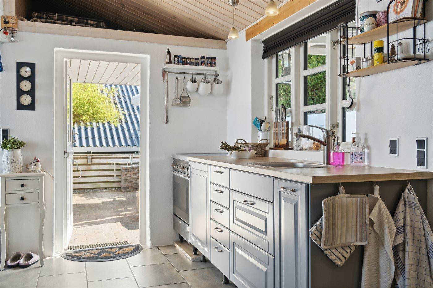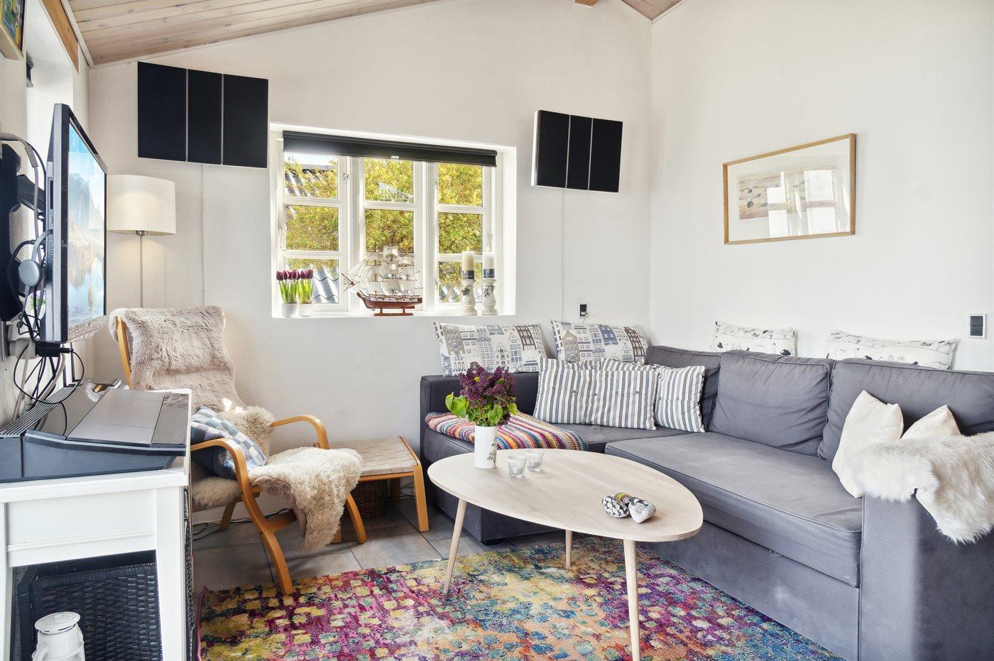 Das hell eingerichtete Sommerhaus verfügt über mehrere gute Terrassenbereiche - sowohl vor als auch hinter dem Haus. Die teilweise überdachte und nach Süden ausgerichtete Terrasse hinter dem Haus liegt ungestört und lädt zu gemütliche Abende im Freien ein.